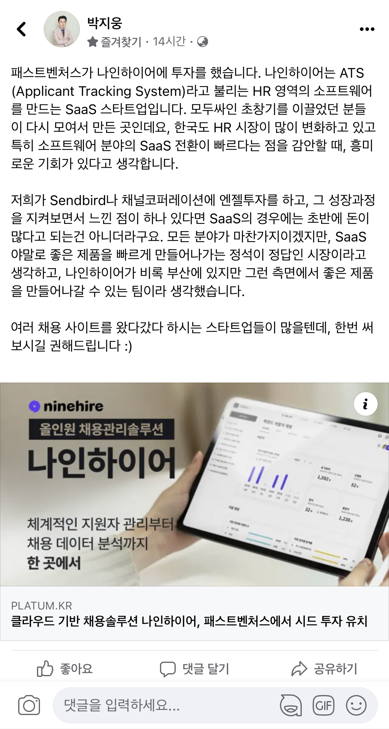 클라우드 기반 채용솔루션 나인하이어, 패스트벤처스에서 시드 투자 유치