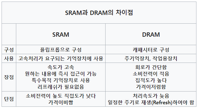 안녕하세요. 취업한 공대누나입니다. 오늘은 SRAM에 대해서 자세히 알아보도록 하겠습니다. 1. SRAM이란? Static Random Access Memory의 약자로 플립플롭 방식의 메모리 장치를 가지고 있는 RAM입니다. DRAM