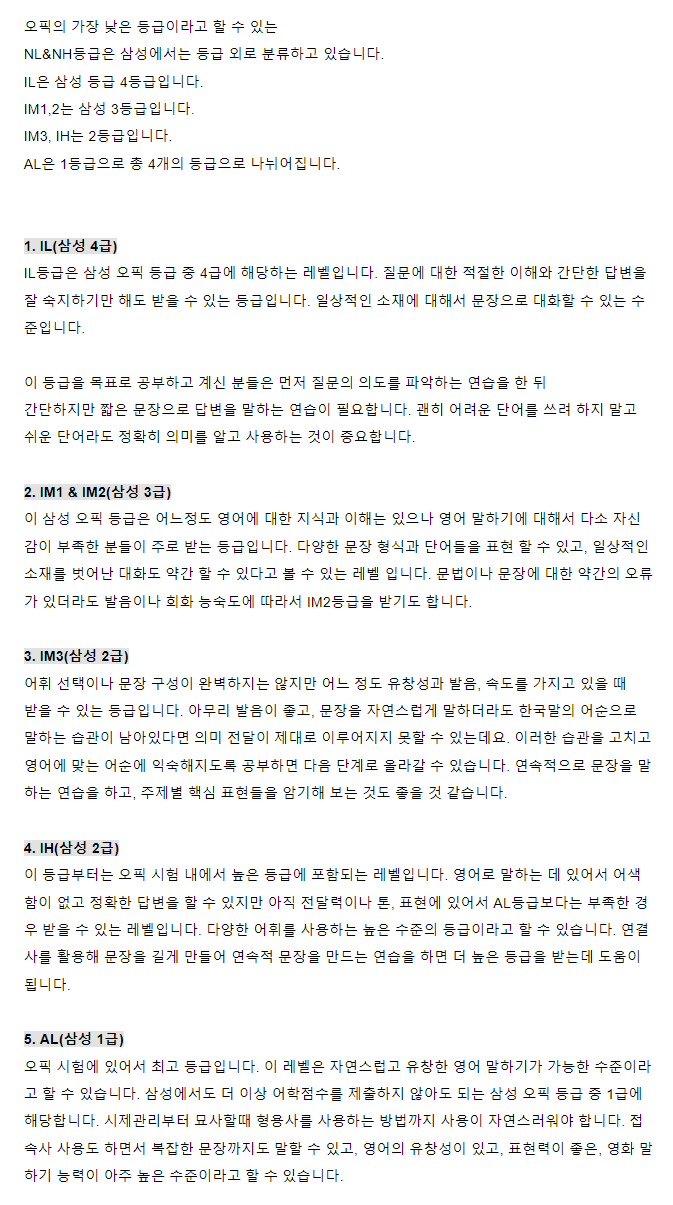 삼성 오픽 등급 & 기준
