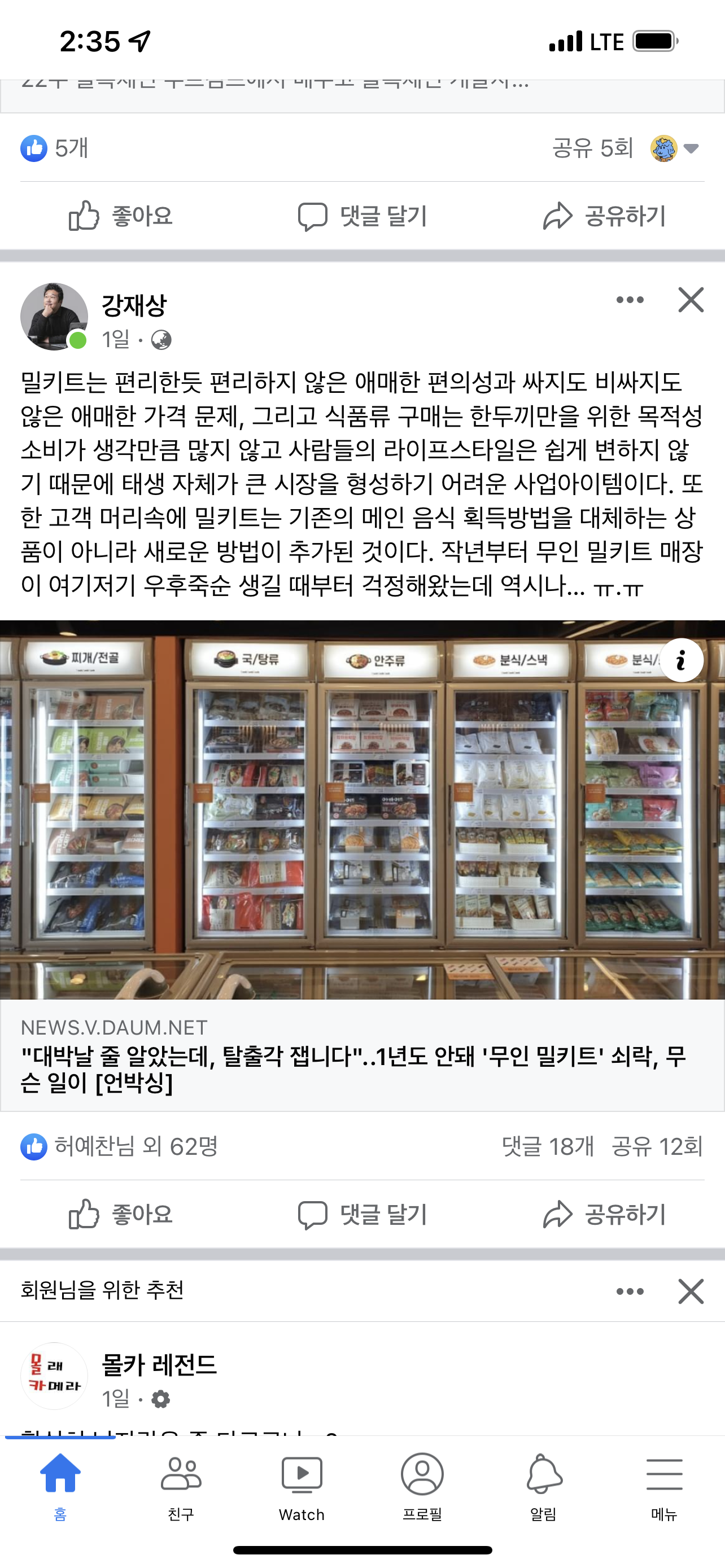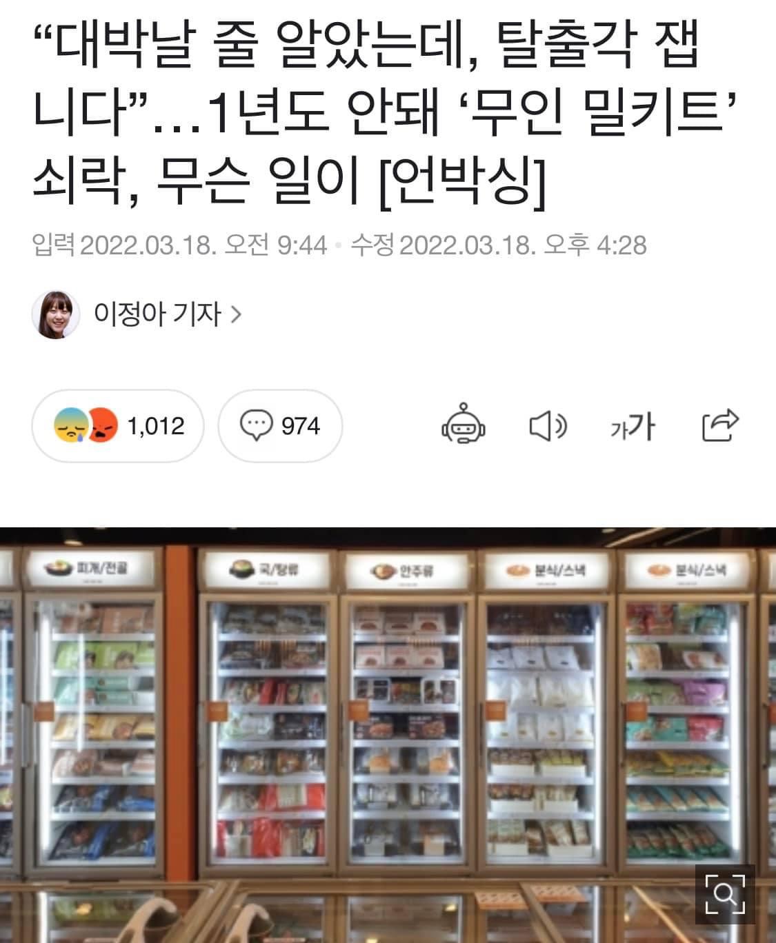 2.이 기사 댓글보면 왜 사람들이 무인 밀키트 매장을 잘 안가는지 아주 잘 나와있음. 무인•오토 매장 창업을 생각하는 분들은 진지하게 쭉 읽어보셈.