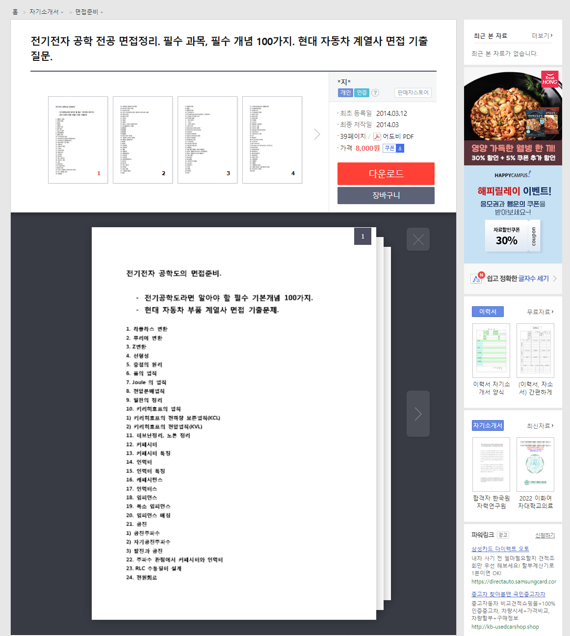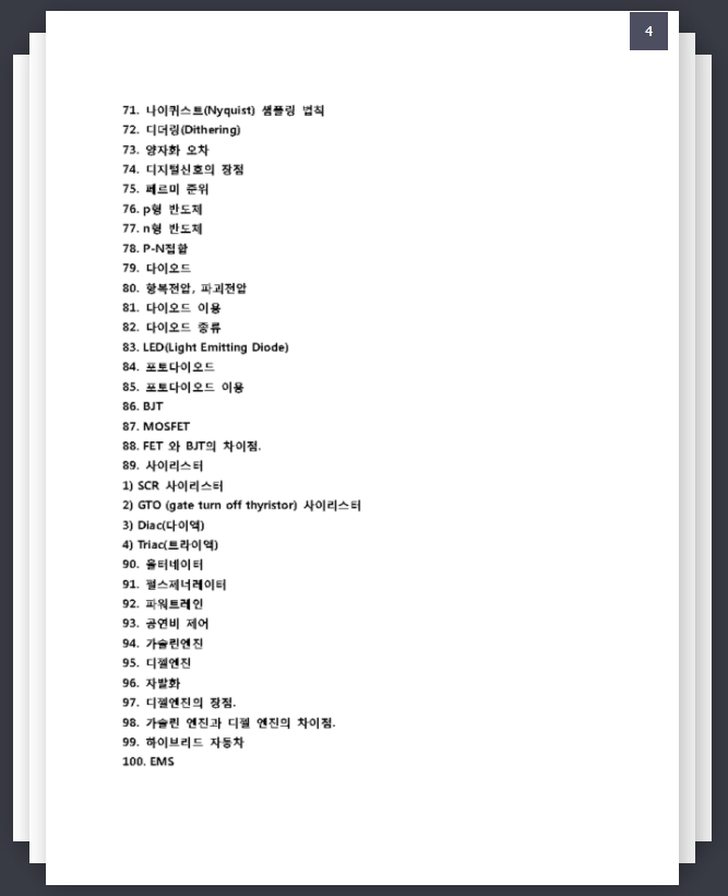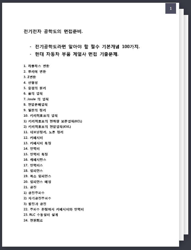 전기전자 공학 전공 면접정리. 필수 과목, 필수 개념 100가지. 현대 자동차 계열사 면접 기출질문.