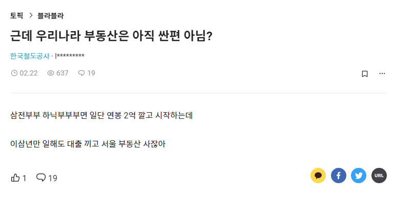 블라블라: 근데 우리나라 부동산은 아직 싼편 아님?