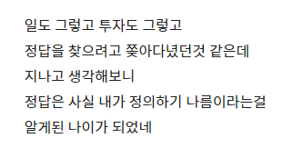 20대로 돌아가면 하고 싶은일 있어??10년전 허허벌판이였던곳에 도시가 생기는걸 보니어른들이 말한 10년이면 강산이 변한다는 말이 무엇인지 체감하고 이해할수 있더라고서른 중반 넘어서 돌아