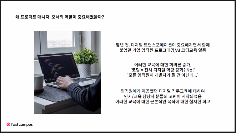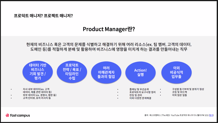 근데 사실 회사에서 한명이 이걸 다 한다기 보다는, 사실 PO, PM 등 집단으로서 문제해결.