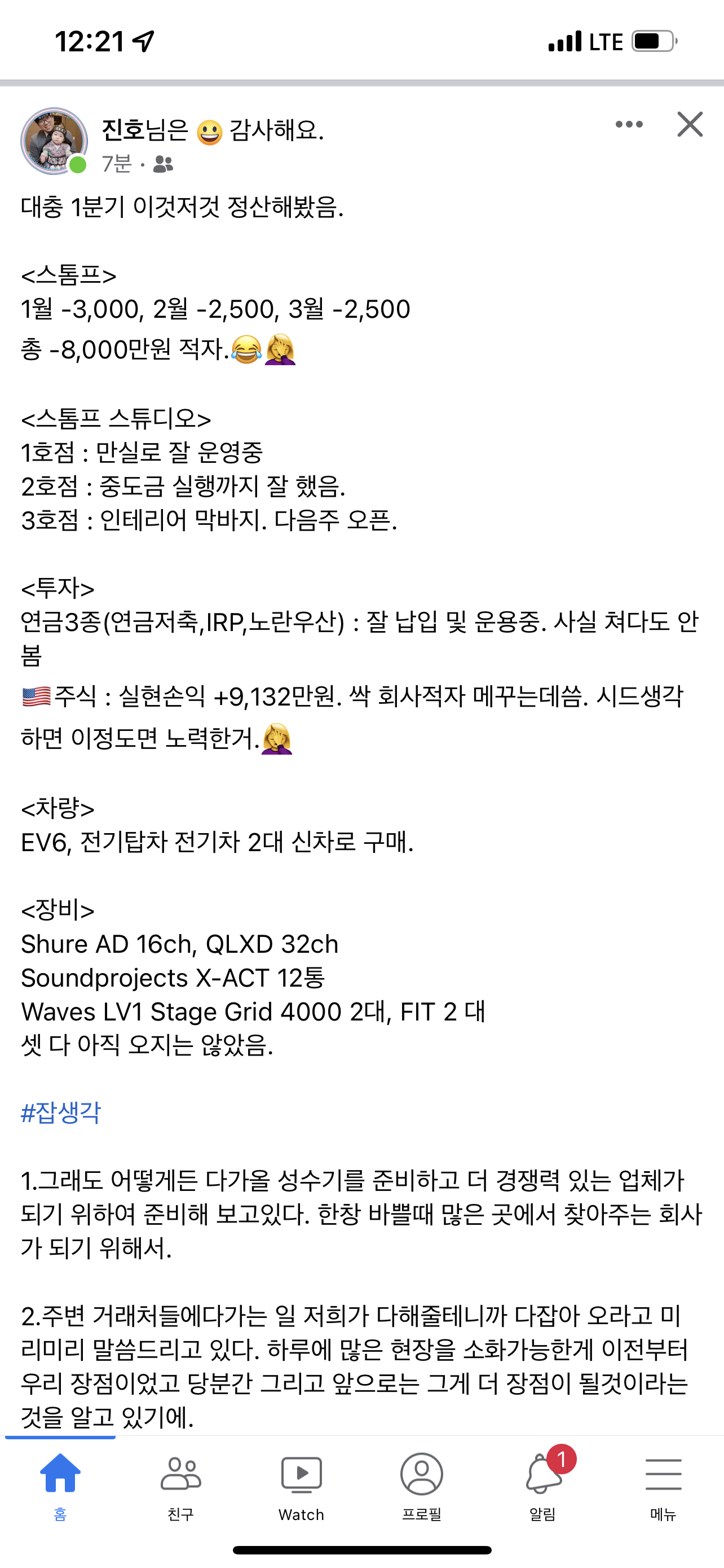 5.그리고 함께하고 있는 직장 동료들 때문에라도 쭉 해야지 않겠나. 지금까지 함께 일궈온건데. 여튼 우리는 이제 잘 될날만 남은 것 같은데 그게 언제려나?🤔😆