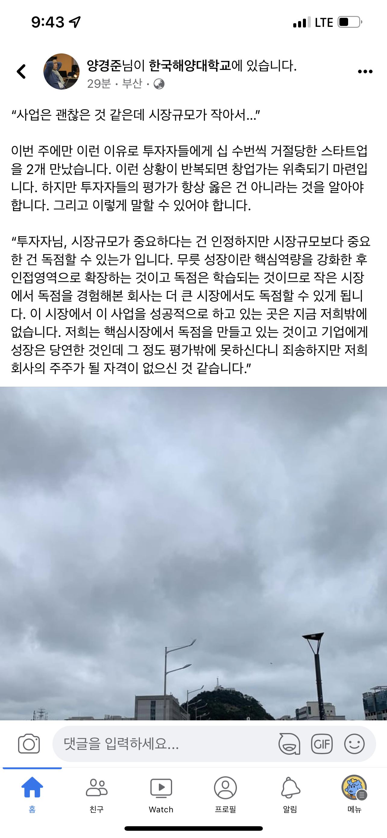 “투자자님, 시장규모가 중요하다는 건 인정하지만 시장규모보다 중요한 건 독점할 수 있는가 입니다. 무릇 성장이란 핵심역량을 강화한 후 인접영역으로 확장하는 것이고 독점은 학습되는 것이므로 작은 시장에서 독점을 경험해본 회사는 더 큰 시장에서도 독점할 수 있게 됩니다. 이 시장에서 이 사업을 성공적으로 하고 있는 곳은 지금 저희밖에 없습니다. 저희는 핵심시장에서 독점을 만들고 있는 것이고 기업에게 성장은 당연한 것인데 그 정도 평가밖에 못하신다니 죄송하지만 저희 회사의 주주가 될 자격이 없으신 것 같습니다.”