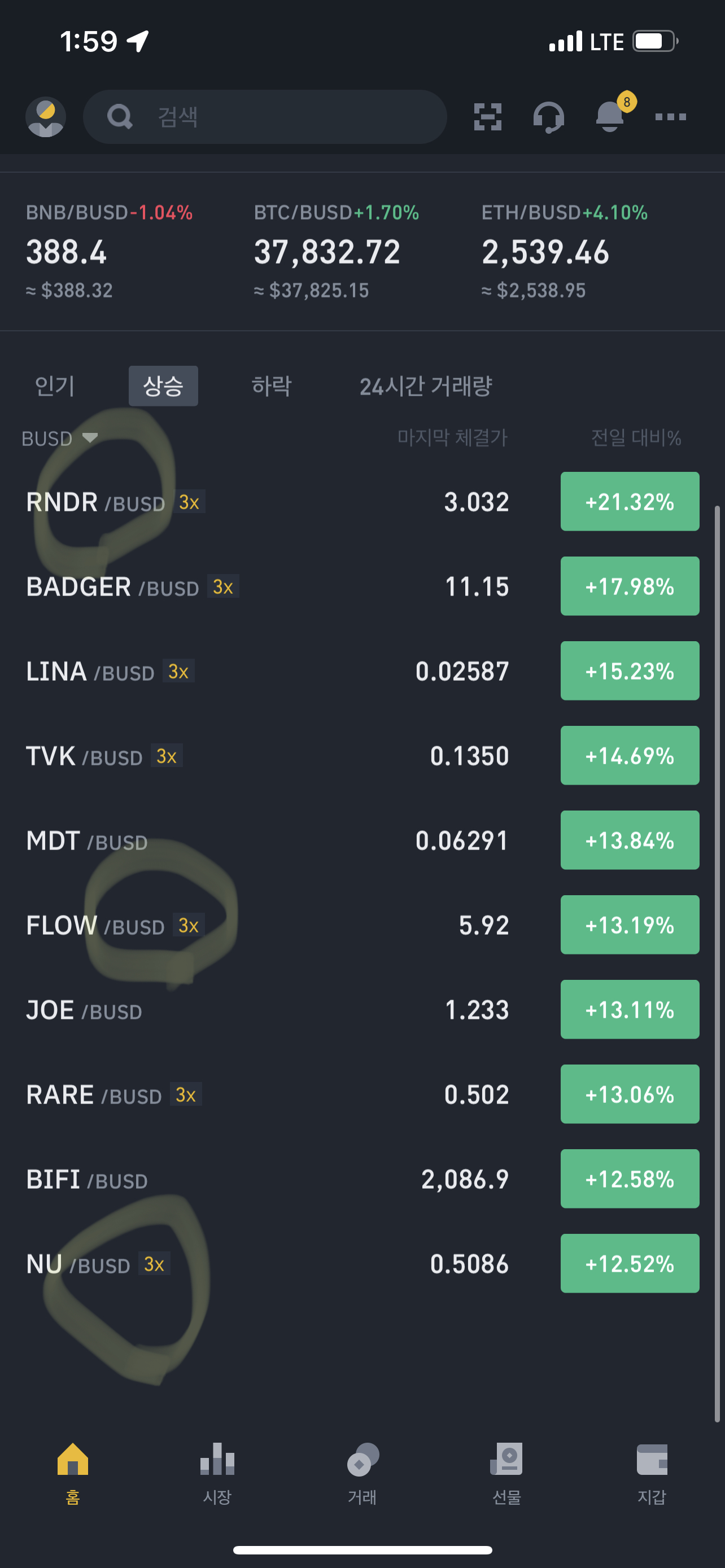 중간에 FLOW 그리고 RNDR는 더 올랐다.