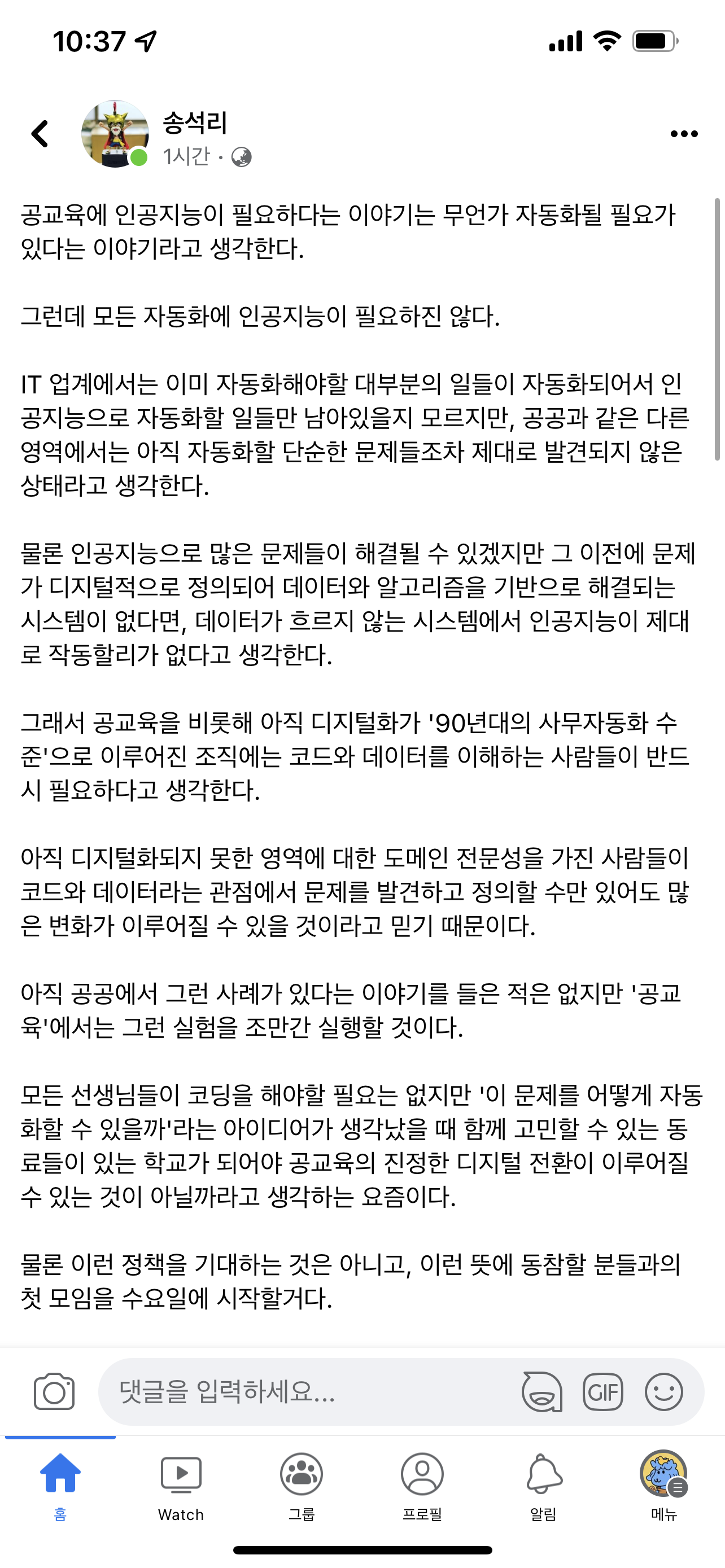 공교육에 인공지능이 필요하다는 이야기는 무언가 자동화될 필요가 있다는 이야기라고 생각한다.