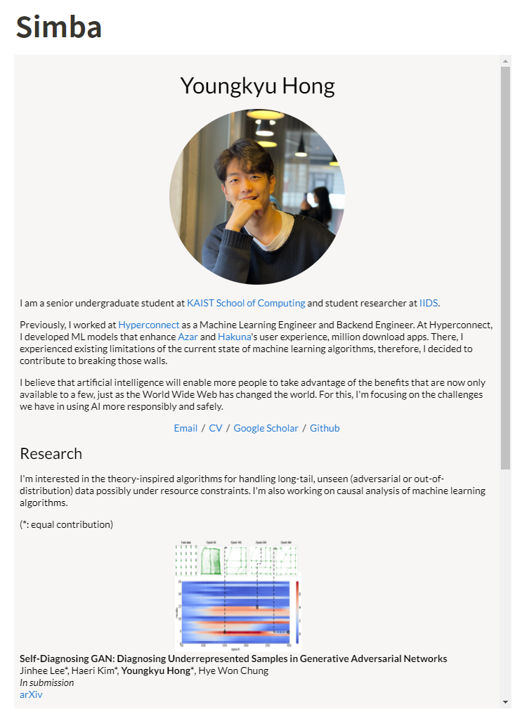 Previously, I worked at Hyperconnect as a Machine Learning Engineer and Backend Engineer. At Hyperconnect, I developed ML models that enhance Azar and Hakuna's user experience, million download apps. There, I experienced existing limitations of the current state of machine learning algorithms, therefore, I decided to contribute to breaking those walls.