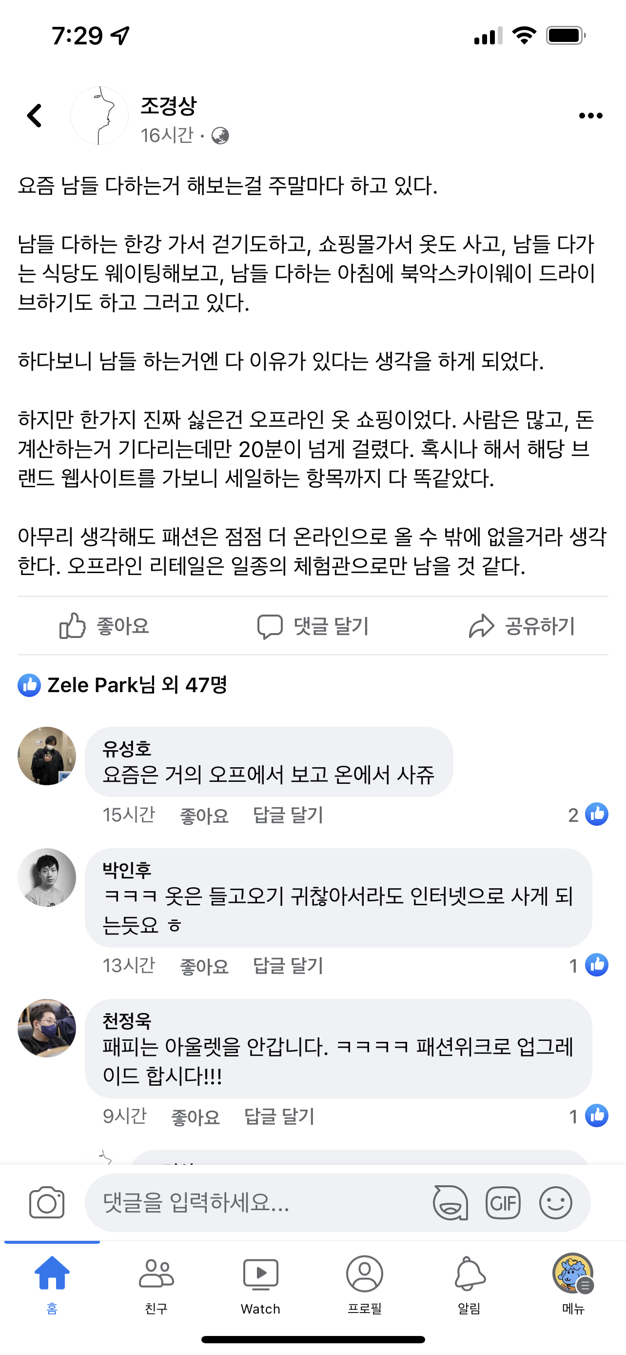 아무리 생각해도 패션은 점점 더 온라인으로 올 수 밖에 없을거라 생각한다. 오프라인 리테일은 일종의 체험관으로만 남을 것 같다.