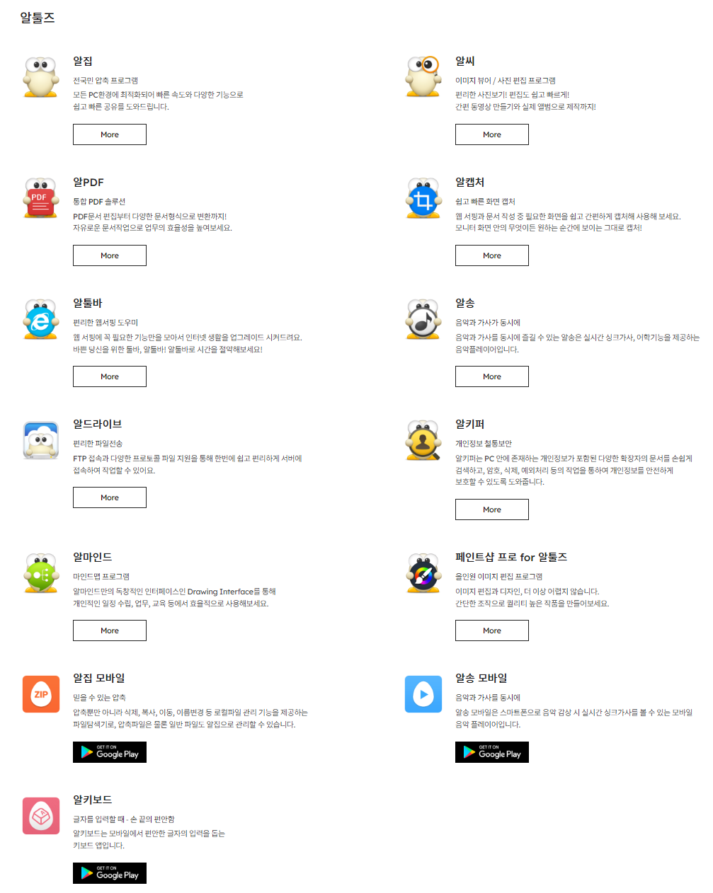종합 소프트웨어 기업, 회사소개, 투자정보, 채용정보, AI(인공지능), 보안, 커머스, 금융, 챗봇, 유틸리티 등