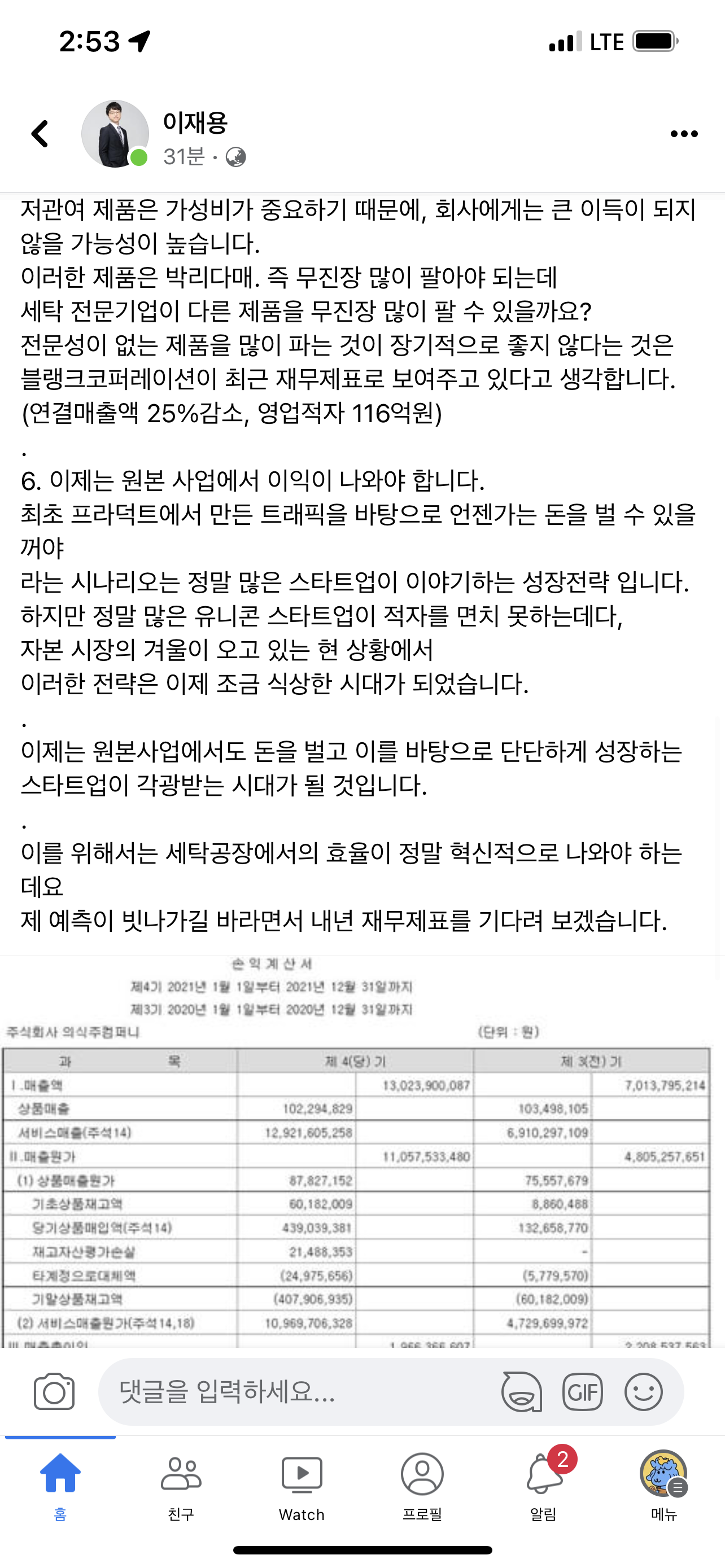 제 예측이 빗나가길 바라면서 내년 재무제표를 기다려 보겠습니다.