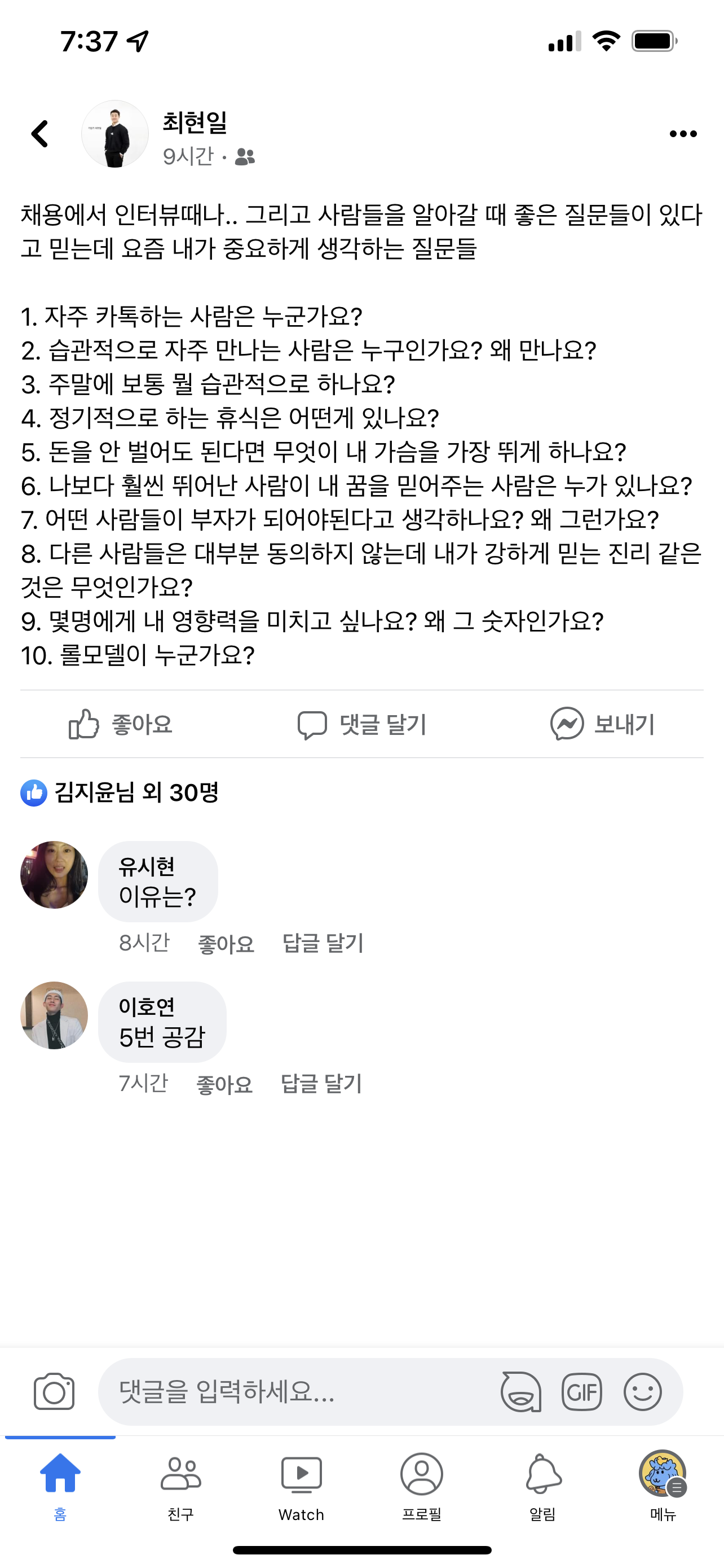 채용에서 인터뷰때나.. 그리고 사람들을 알아갈 때 좋은 질문들이 있다고 믿는데 요즘 내가 중요하게 생각하는 질문들