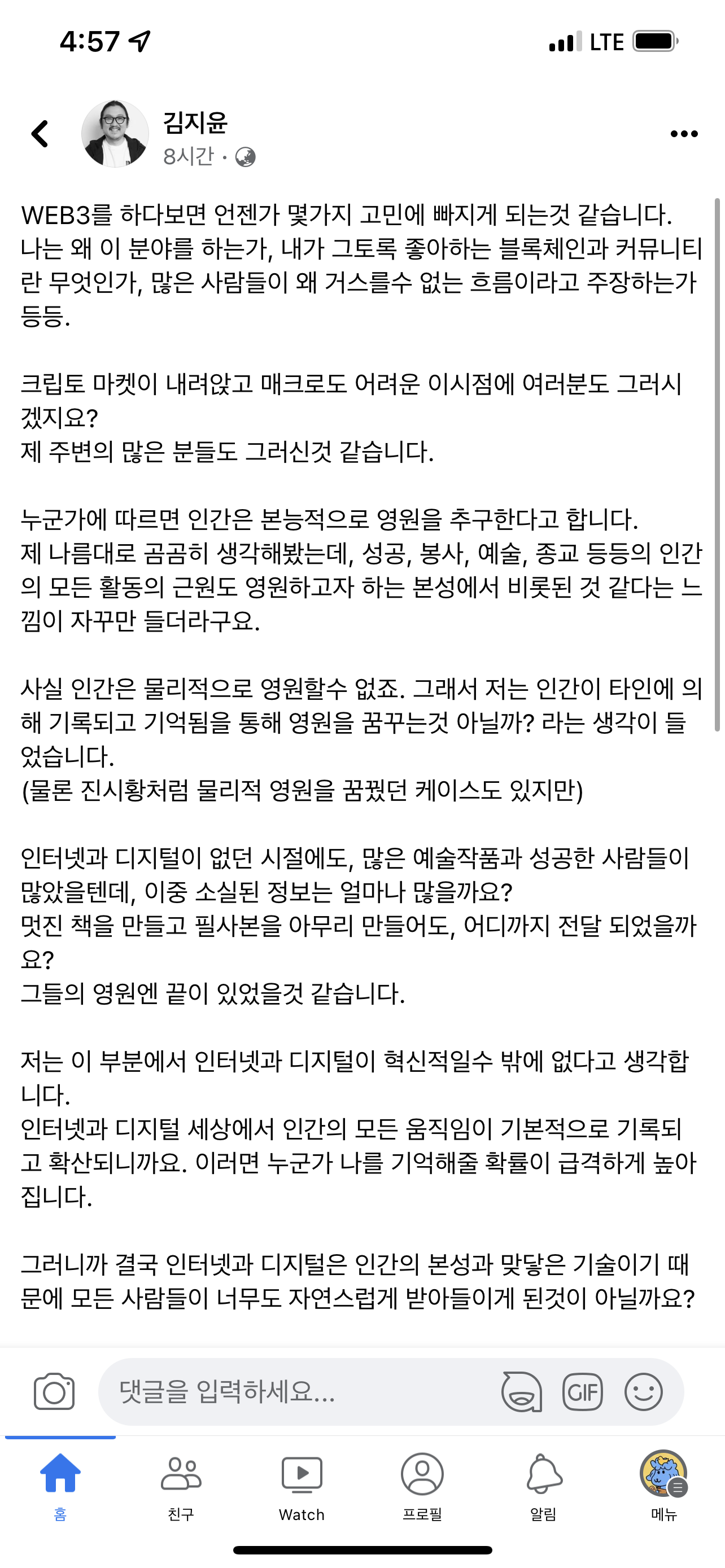 이러한 부분을 해결하기 위해 많은 사람들이 노력하고 있는 분야가 WEB3인것 같습니다. 최소한 현재의 인터넷보다 조금 더 긴 수명을 가지고 우리의 영원을 다음 세대로 전달해 줄 좋은 접근법을 다같이 탐구하는 것처럼 보이시지 않나요?