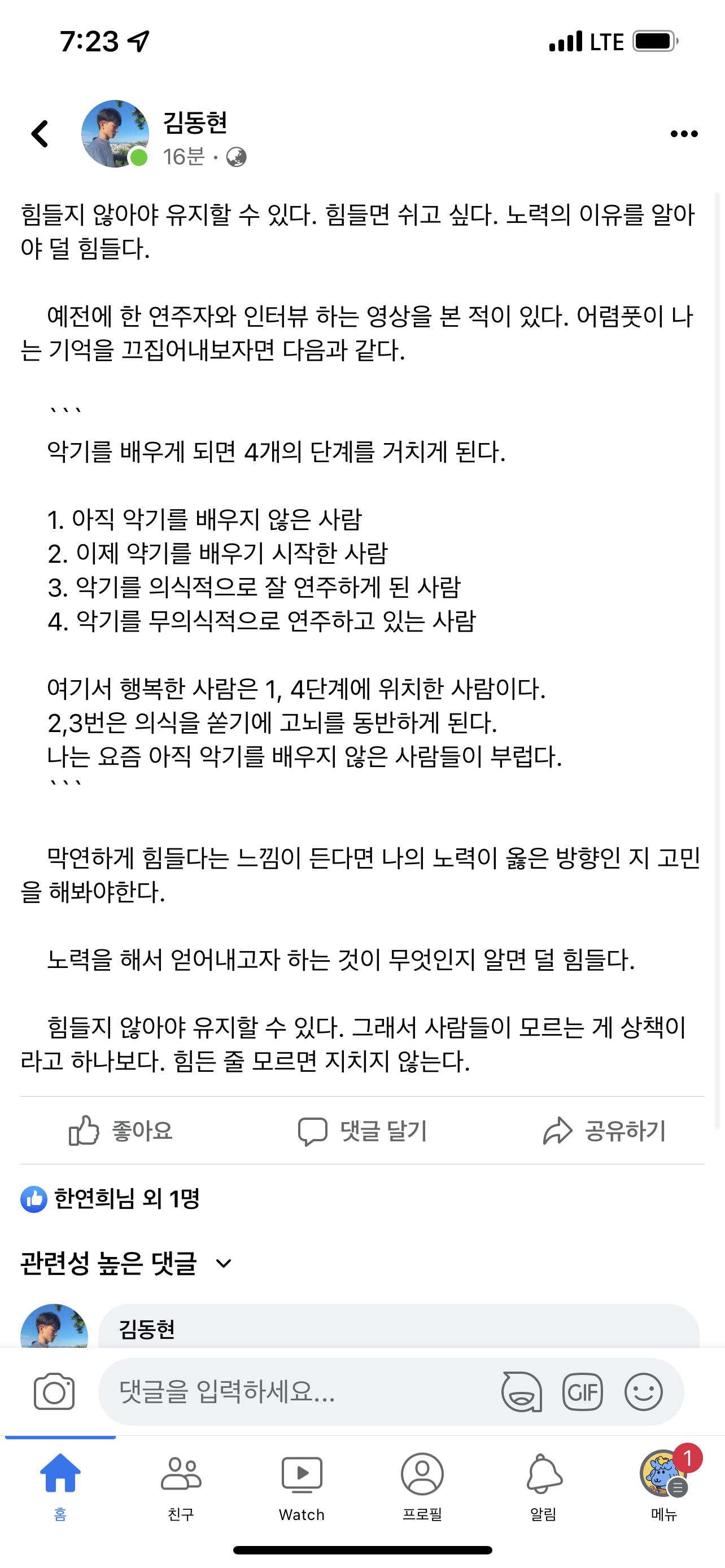 3. 악기를 의식적으로 잘 연주하게 된 사람