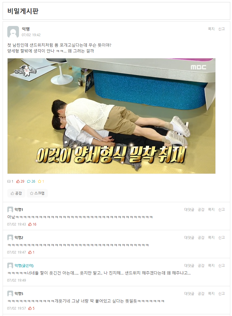 '게시판' 구조 분석하려고 dcinside/everytime/blind 돌아다니다가 웃긴 게시글을 봐서