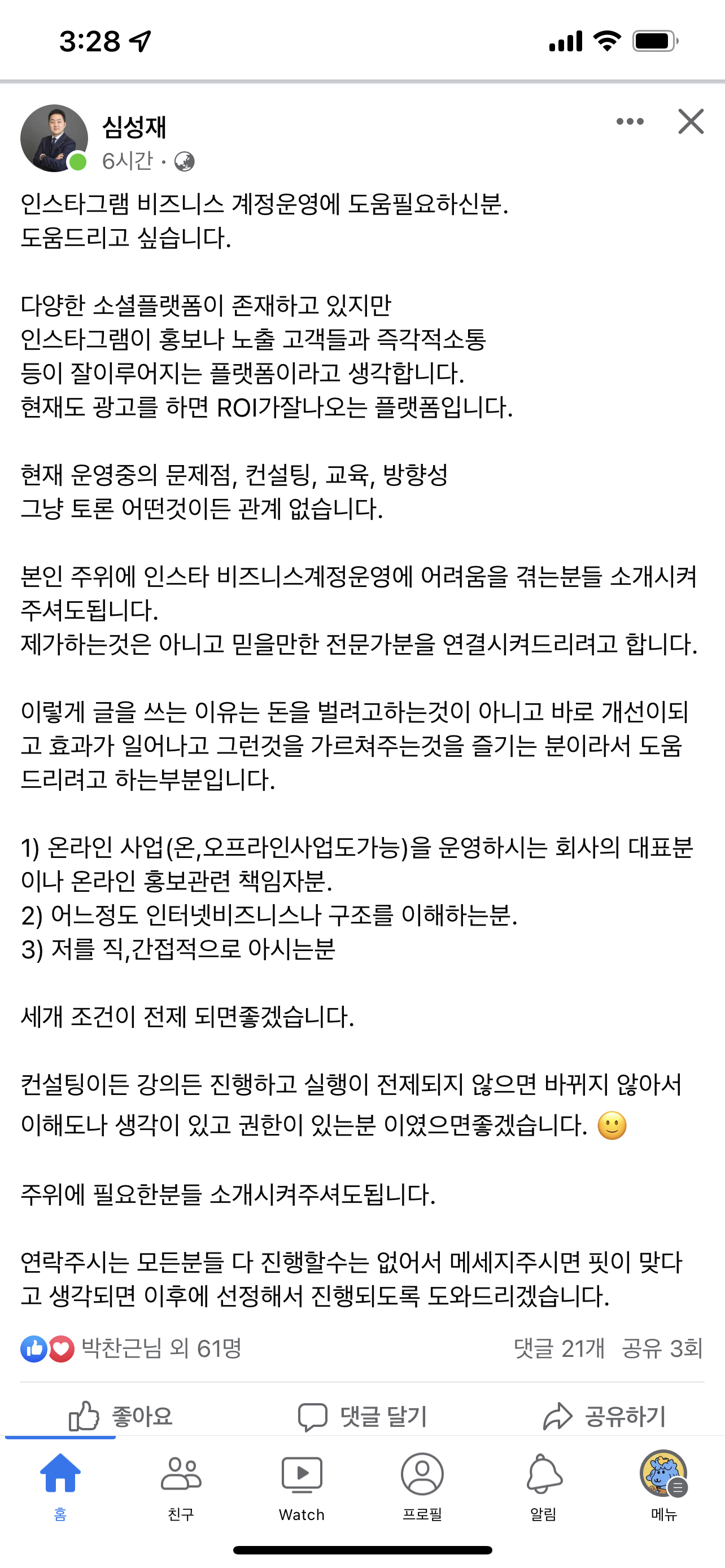 본인 주위에 인스타 비즈니스계정운영에 어려움을 겪는분들 소개시켜주셔도됩니다.