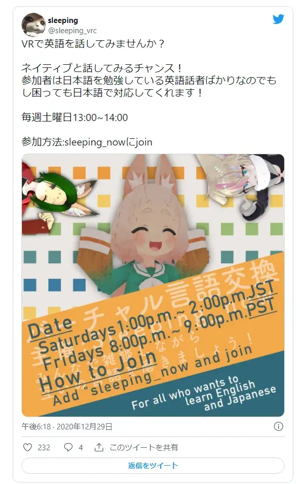 점심이 지나고 밤까지의 시간에는, 어느 플랫폼을 가더라도 일본인 적다. 평일이라고 한다면 더더욱이다. 그런 시간대에 필자가 최근 힘을 쏟고 있는 것이 바로 「국제교류」다. 일본의 유저의 상당수는 일본인 커뮤니티에 생활하고 있고, 시차도 있기에, 해외 유저와 커뮤니케이션을 할 수 있는 기회는 생가보다 적다. 하지만, 이왕의 글로벌 서비스. 외국어 공부에 사용하고 싶은 사람도 있을 것이다