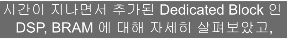 무엇을 위해? 파워소모를 줄이기 위해 BRAM DSP PLL Serial Transceiver 등 non general dedicated block들의 추가