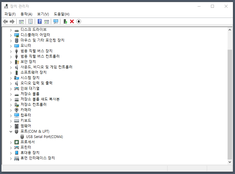 이때 시리얼 Com Port를 확인하는 과정이 필요하다.
