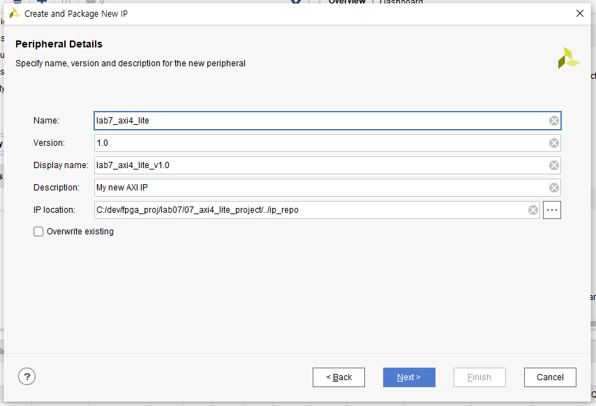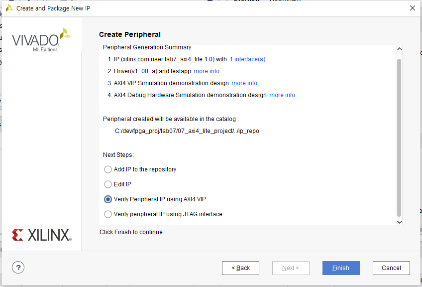 07_axi4_lite_project 라는 프로젝트를 생성해주고