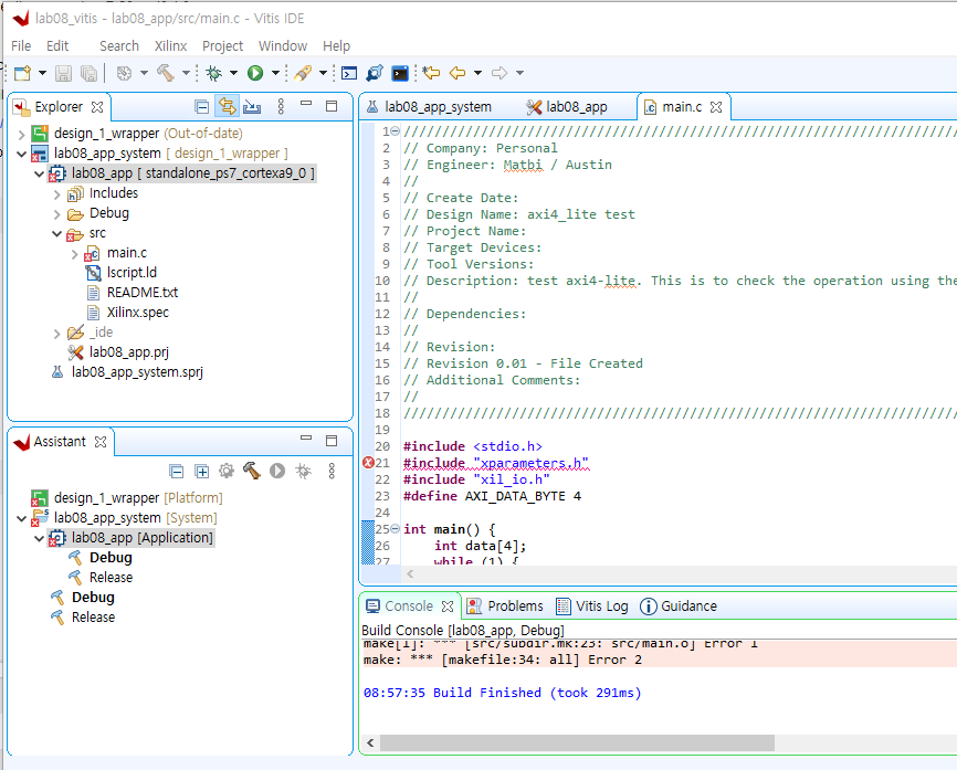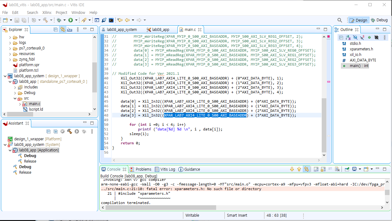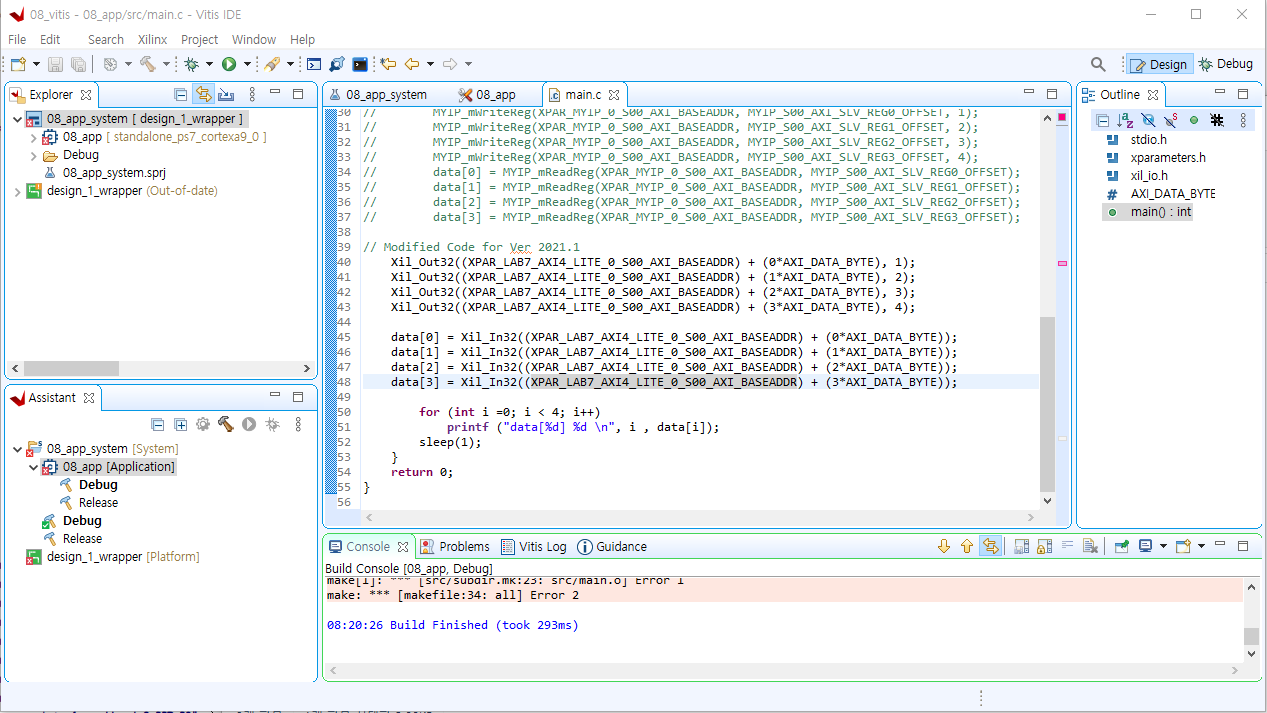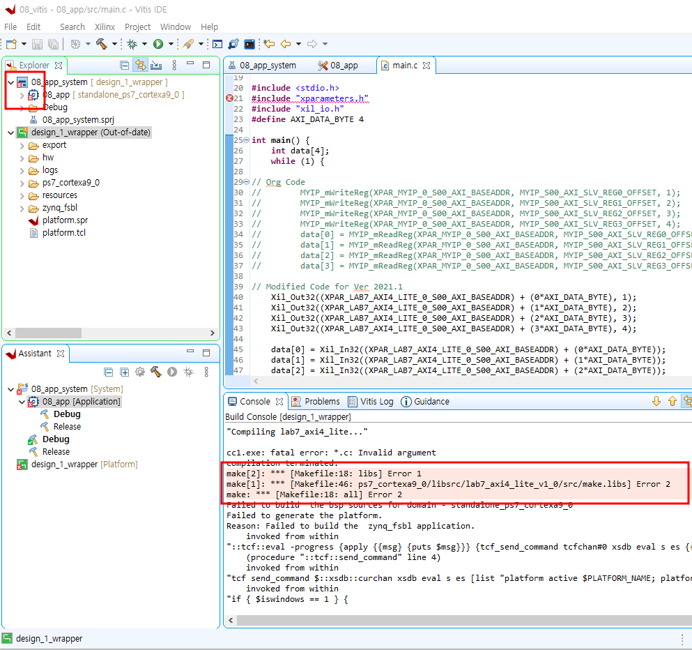 파일 이름을 영어로 시작하게 또 새로 vitis 프로젝트를 구축해주었다.