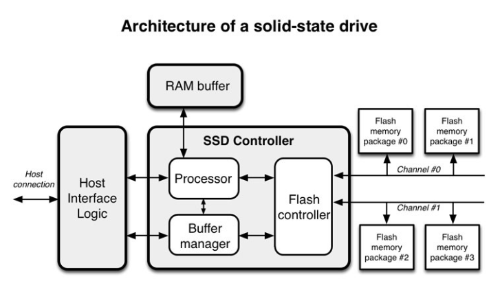 SSD컨트롤러, FlashMemory(FlashMemory컨트롤러 포함)로 구성