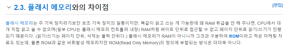 플래쉬메모리와 혼동되는 부분이 일부 있으니