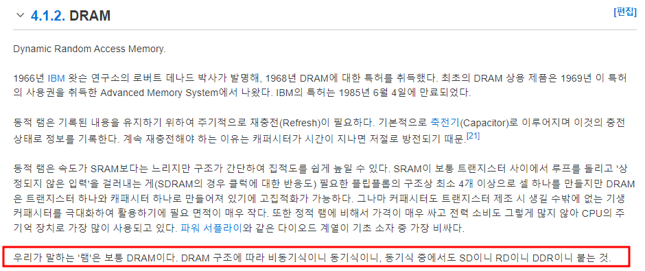 우리가 소위 말하는 RAM은 DRAM을 지칭한다.
