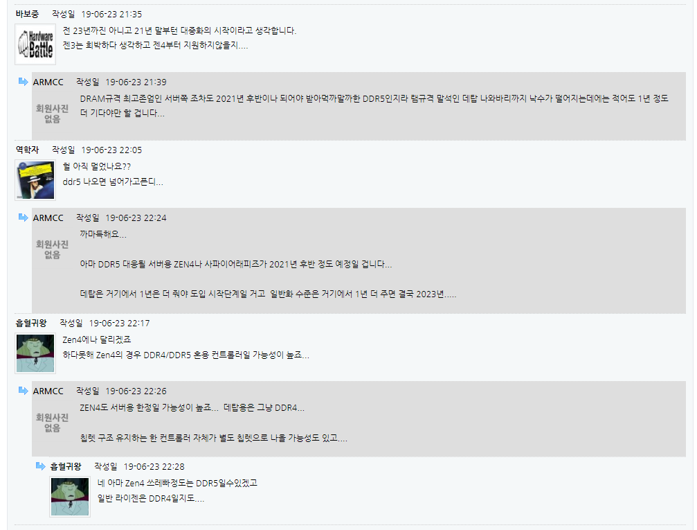 DDR5 대중화에 대한 커뮤니티 의견