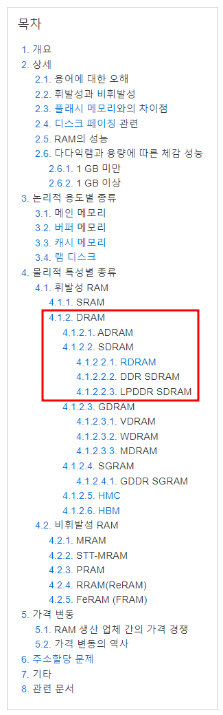 동기식 중에서도 SD, RD, DDR 등으로 나뉜다.