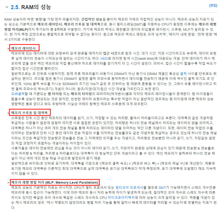 어떤 DRAM이냐 어떤 CPU이냐에 따른 차이가 생겼으며