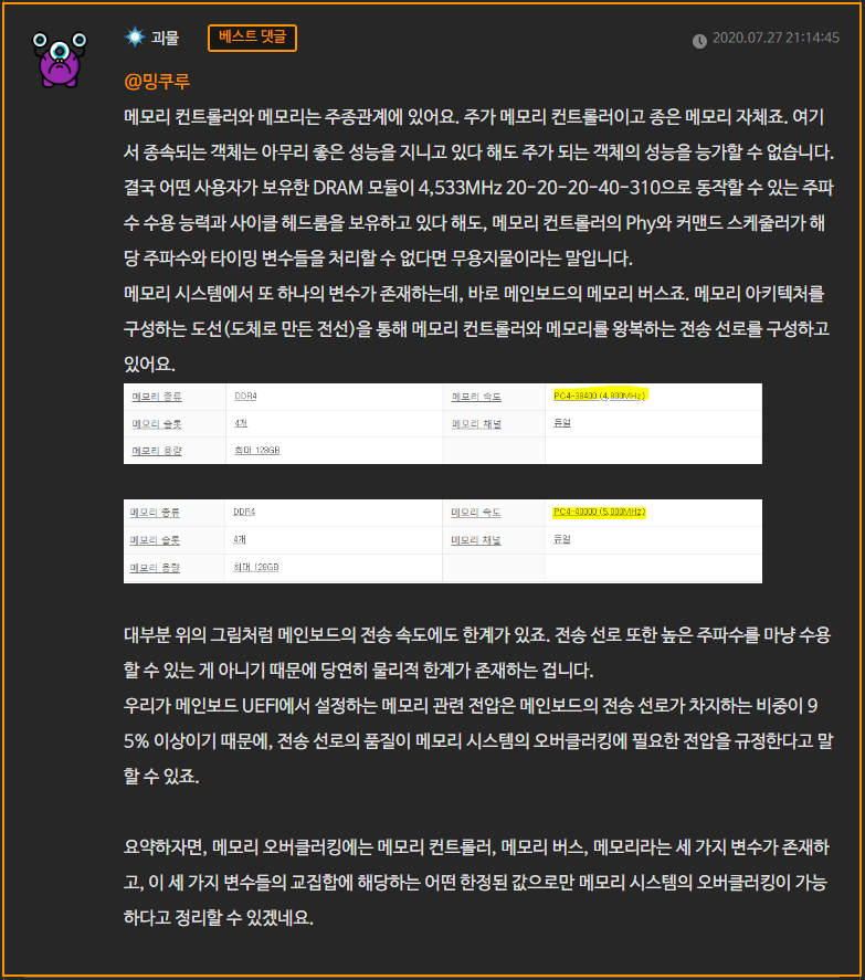 메모리라는 게 주파수와 타이밍으로 움직인다는 건 다들 아실 테니 그냥 패스할게요. 이건 뭐... 상식이니까요…