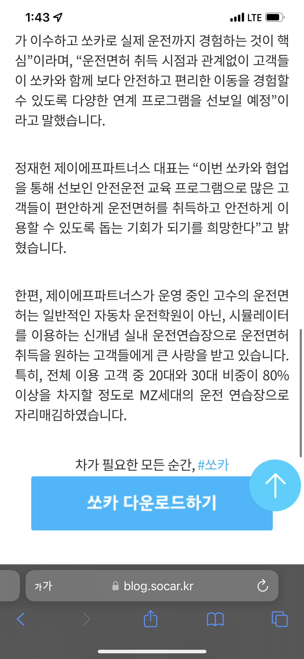 프로그램 이수 시 면허취득 1년 미만이어도 쏘카 이용 가능해져