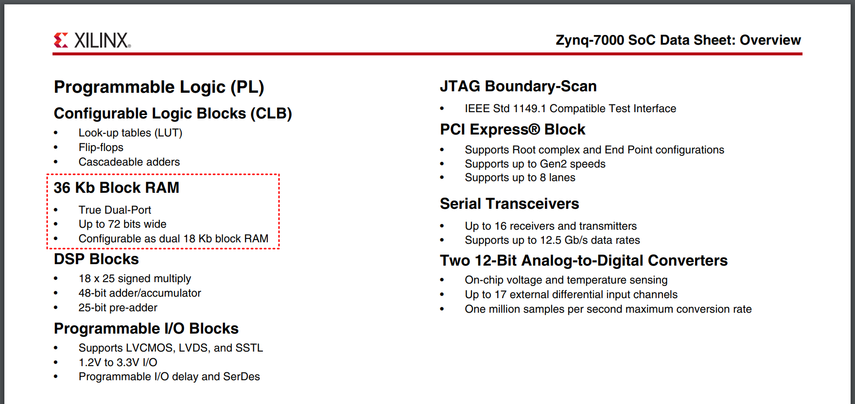 이 문서는 Zynq-7000 DataSheet이다. PL 영역을 구성하는 요소들에 대한 설명과, BRAM이 등장한다.