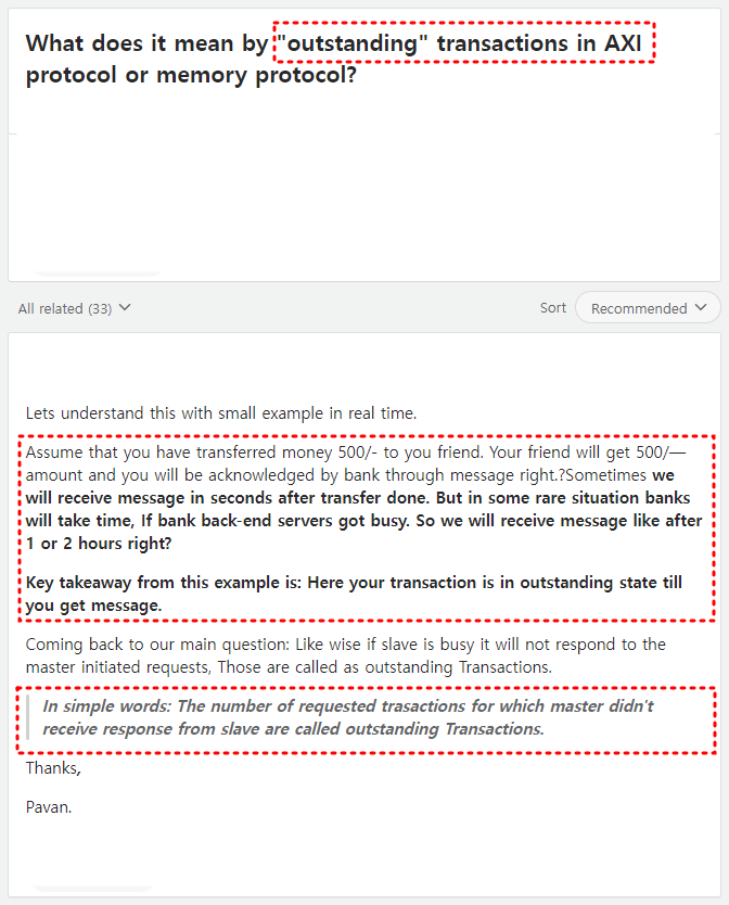 What does it mean by "outstanding" transactions in AXI protocol or memory protocol?