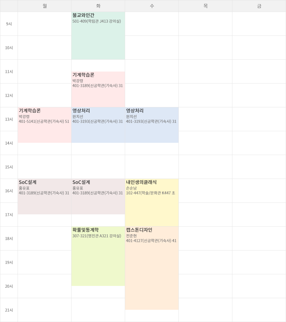 이때 들을 수 있는 불교와인간도 있으며 (오 시간표를 이쁘게 만들 수 있는 여지가 있다.)