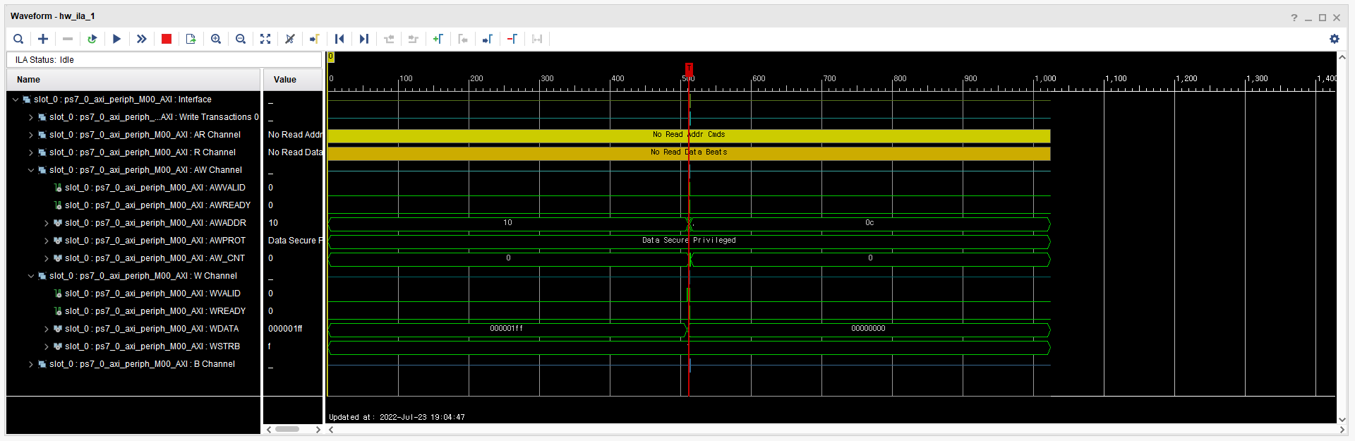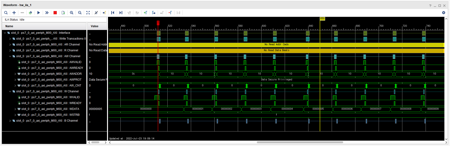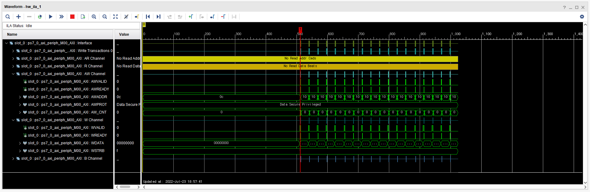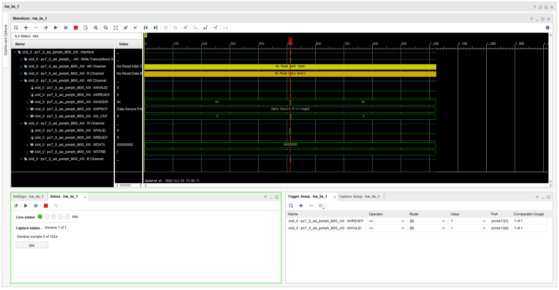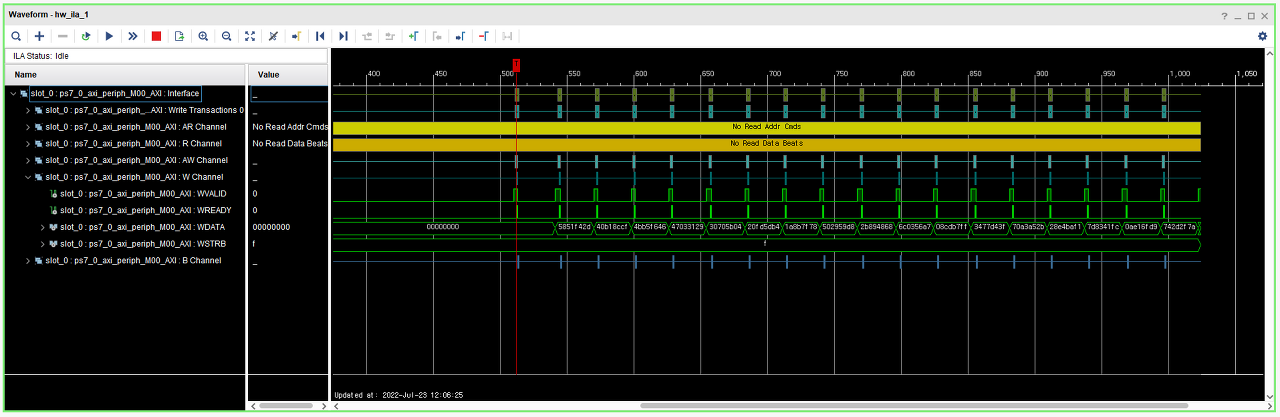 지금은 random값을 저장하는 상태라서 vitis hw manager에서는 다음과 같이 확인된다.