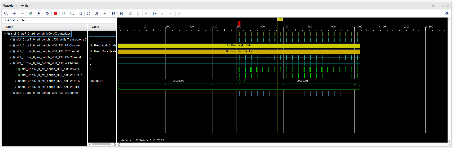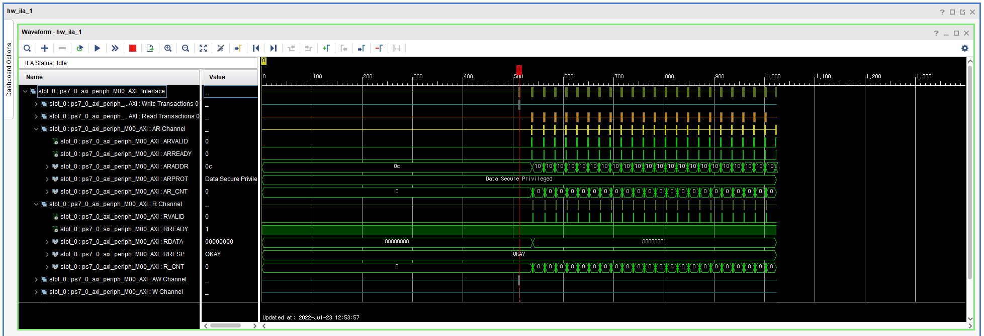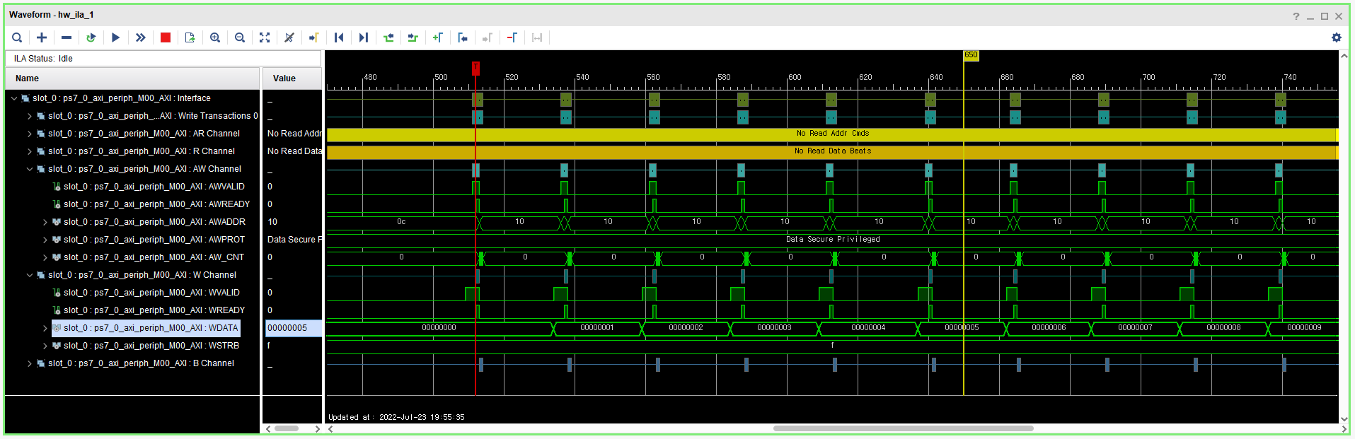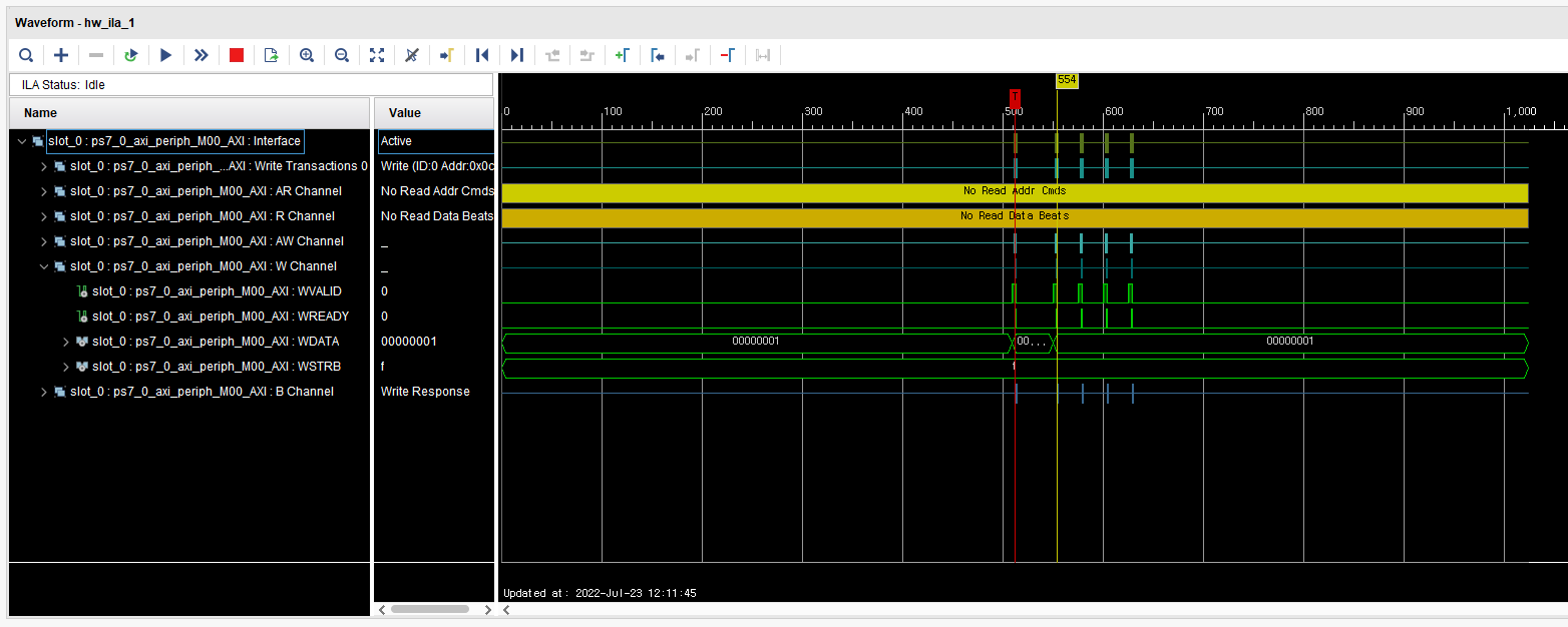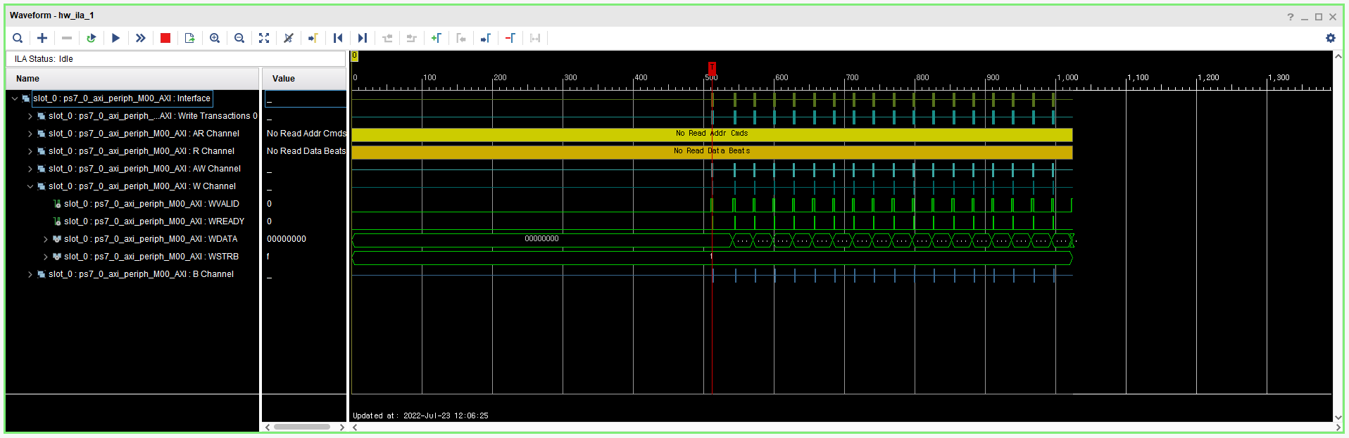 지금은 random값을 저장하는 상태라서 vitis hw manager에서는 다음과 같이 확인된다.