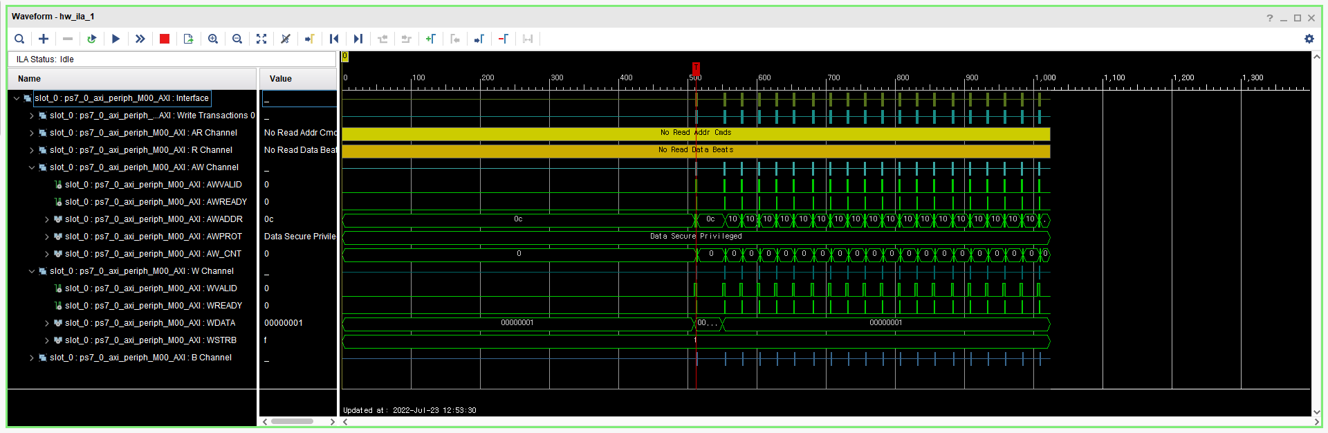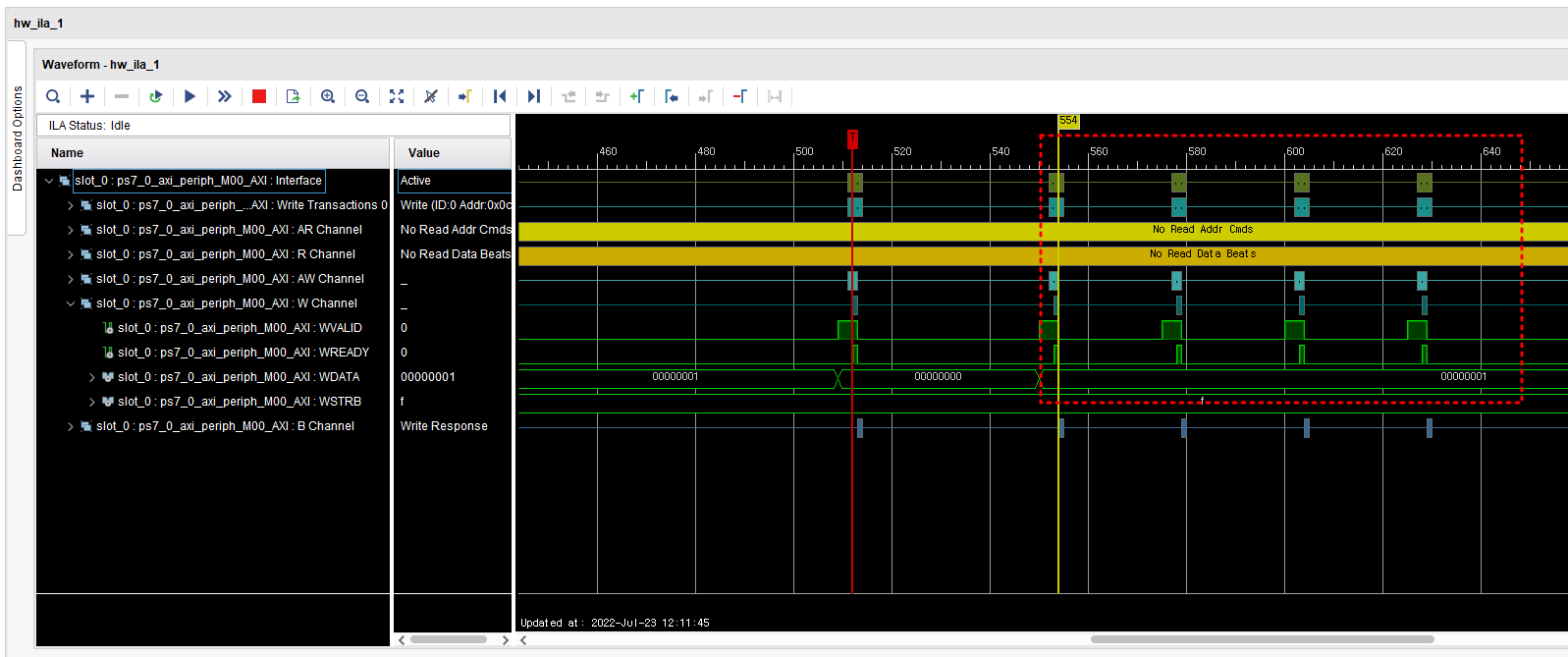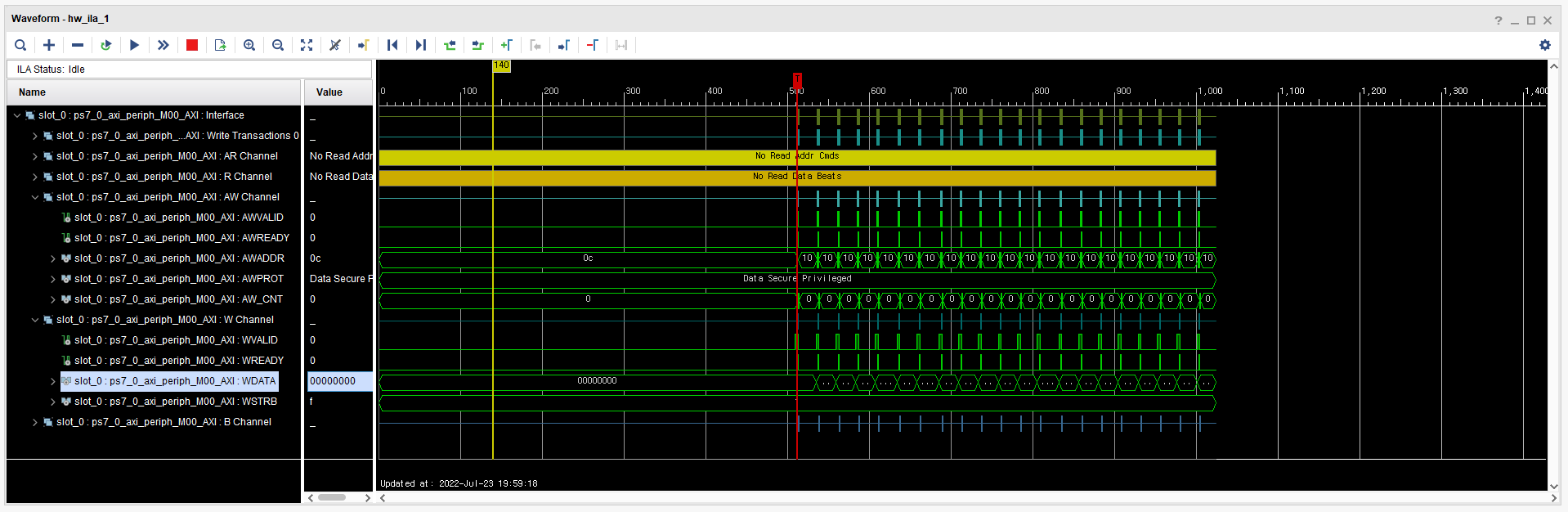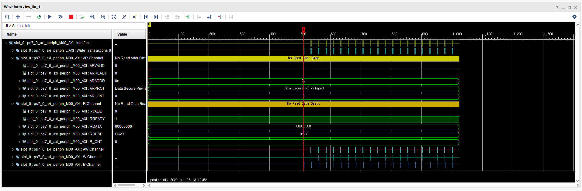지금은 random값을 저장하는 상태라서 vitis hw manager에서는 다음과 같이 확인된다.