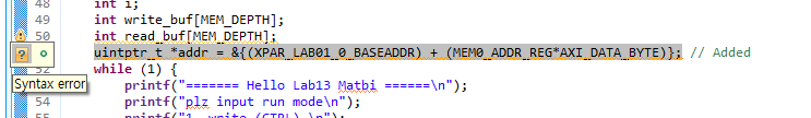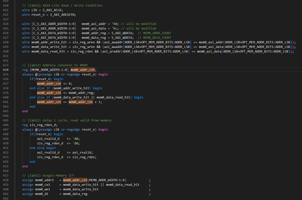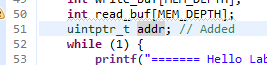 addr = (XPAR_LAB01_0_BASEADDR) + (MEM0_DATA_REG*AXI_DATA_BYTE); // Added
