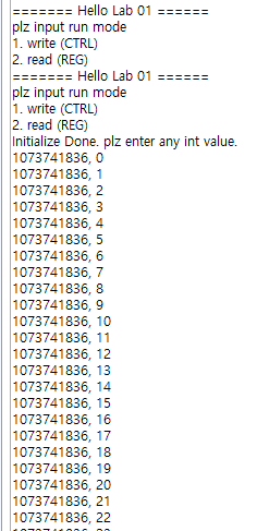 printf("LAB01_0 REG read done reg_number (%d), value : %d\n", reg_num, read_data & 0x7FFFFFFF); // no check run value
