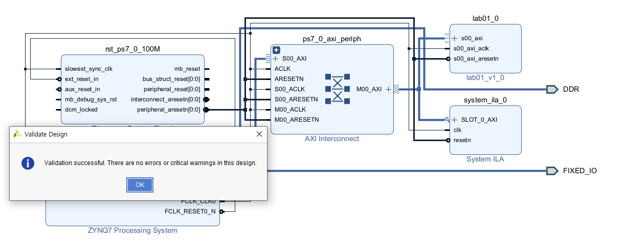 생성한 ip 그리고 zynq ip를 호출 + axi ila 추가 (지금은 공부목적이니 추가하는데, 빼면 훨씬 라이트해질듯)
