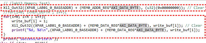Xil_Out32((XPAR_LAB01_0_BASEADDR) + (MEM0_DATA_REG*AXI_DATA_BYTE), write_buf[i]); // Clear