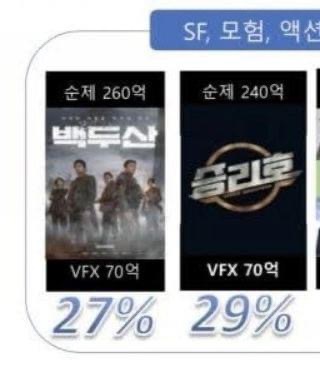 최근 한국 영화들을 보니 백두산은 70억, 승리호가 70억 정도더라. 해외 업체랑 같이 했다면 200억은 족히 씨지 비용으로 썼지 않았을까?