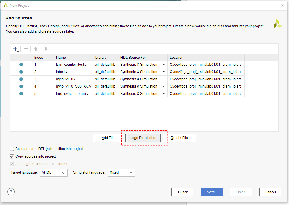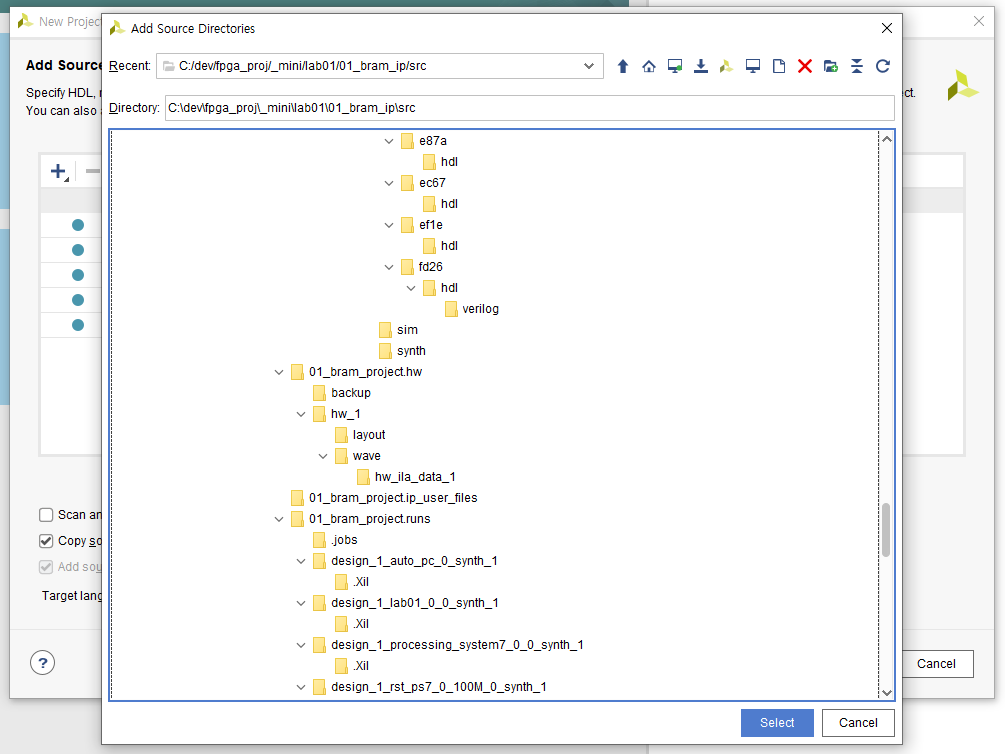 - In the Add Source Files dialog box, navigate to the /src/lab1 directory.