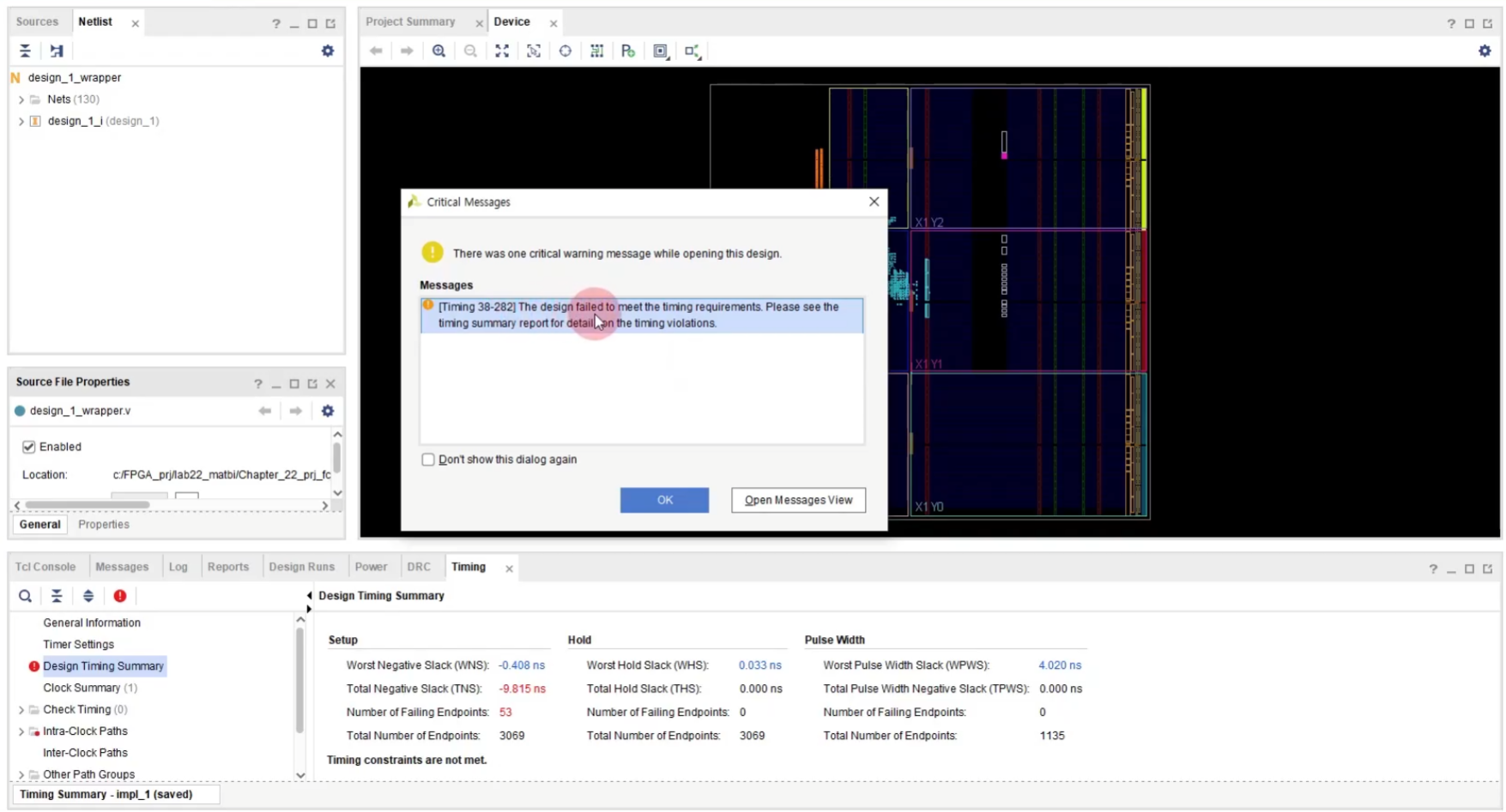 timing closure가 이루어졌다.