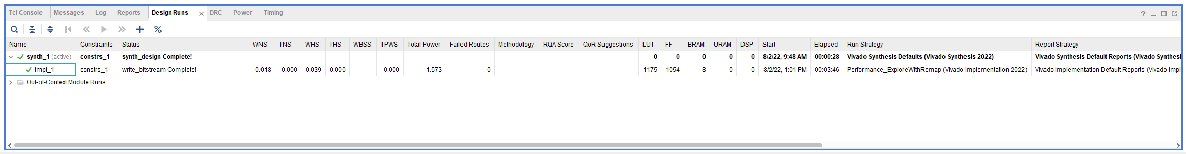 Performance_Explore Explore Explore Performance_ExplorePostRoutePhysOpt Explore Explore Performance_ExploreWithRemap ExploreWithRemap Explore Performance_WLBlockPlacement Default WLDrivenBlockPlacement Performance_WLBlockPlacementFanoutOpt Default WLDriven