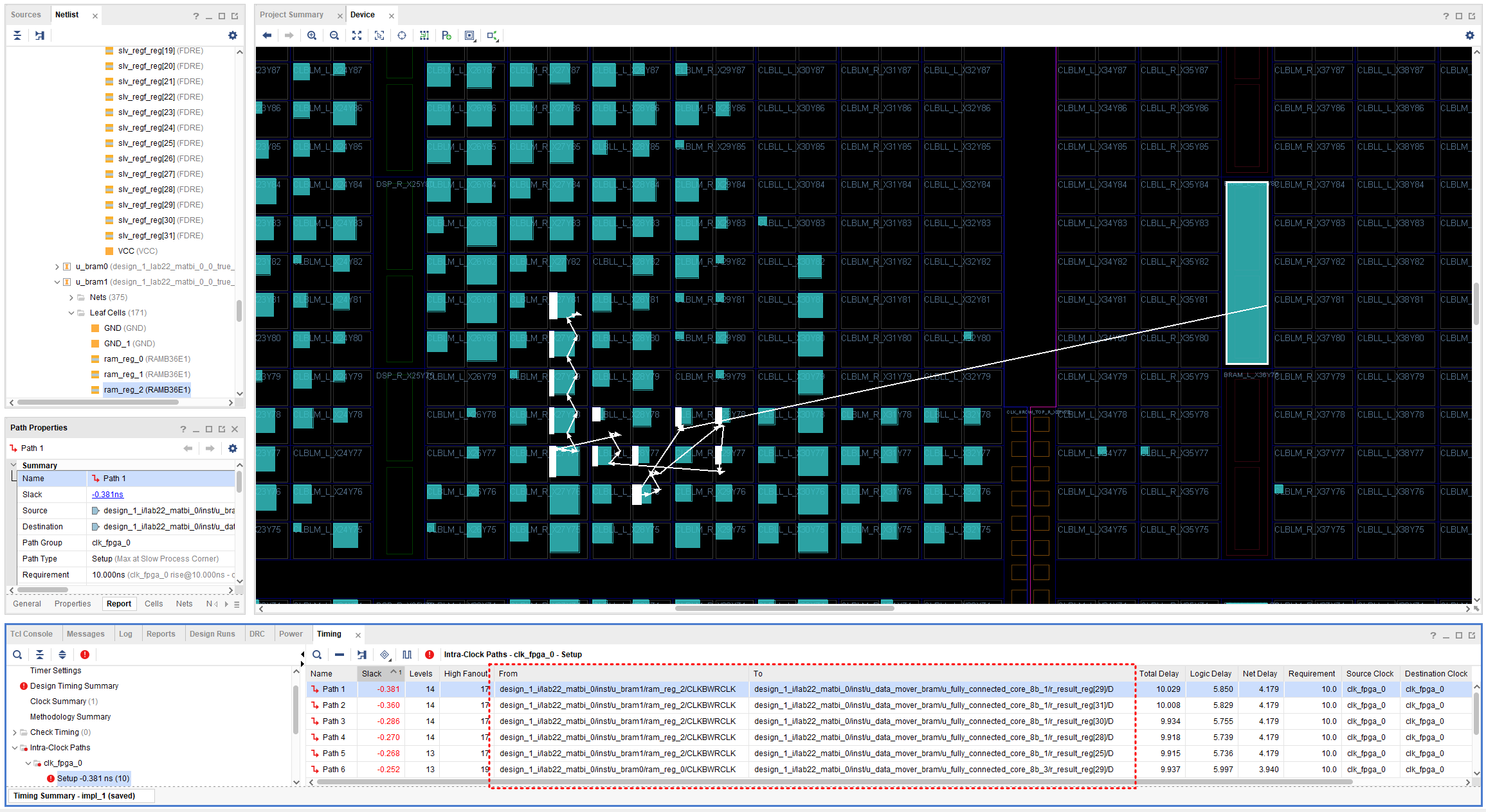 fully_connected_core에서 violation이 난 것을 확인할 수 있다.