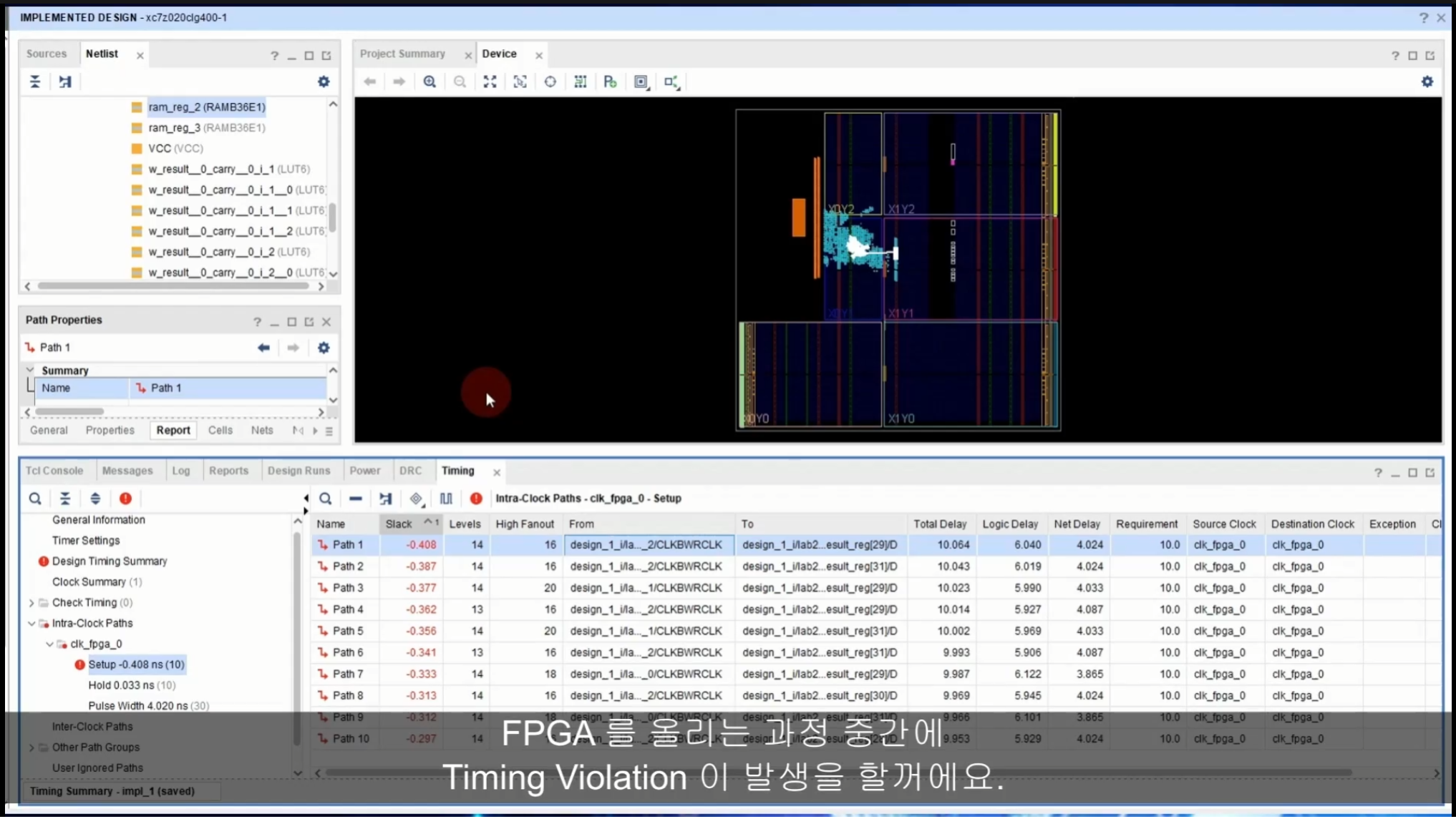- vivado tool이 갖고있는 option을 수정해 violation을 잡는 것이다.